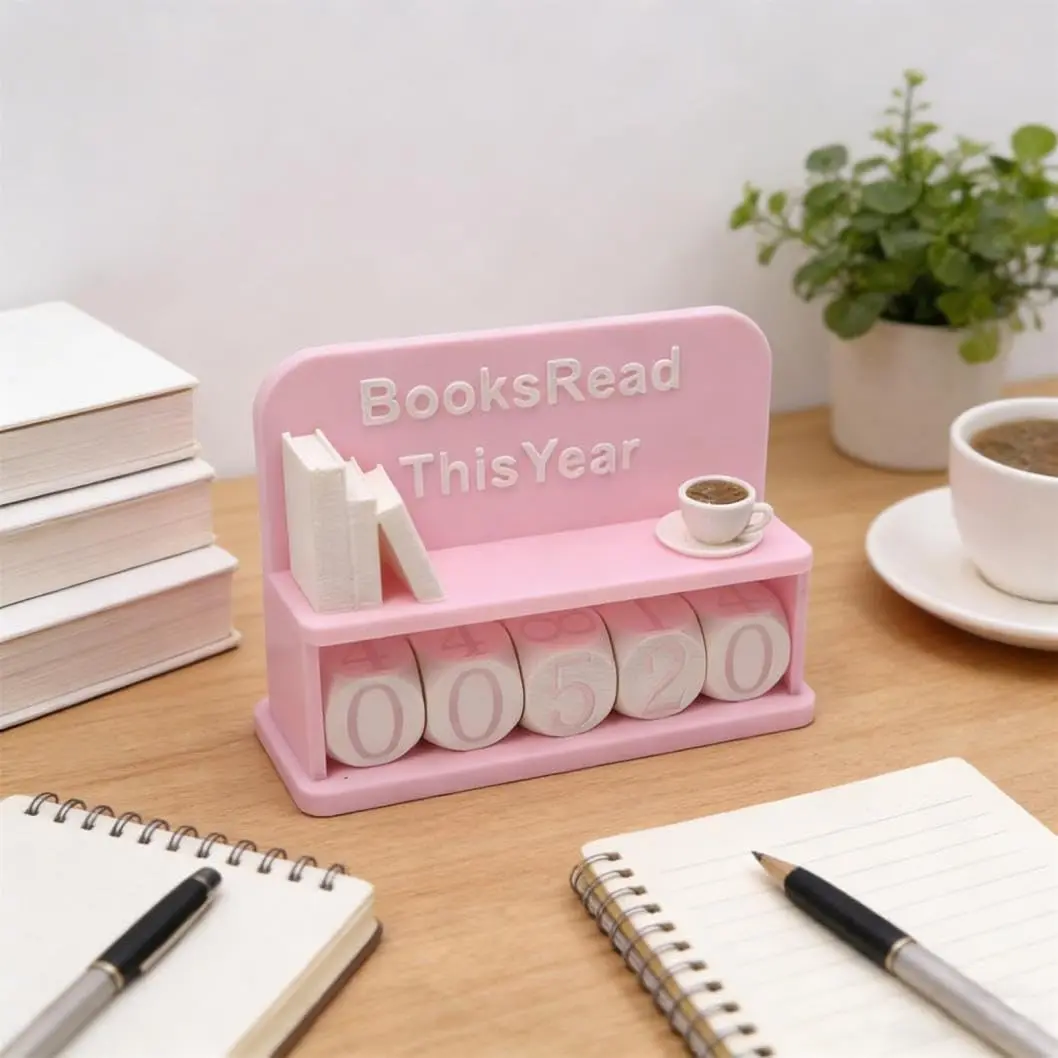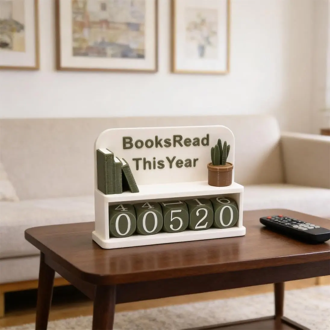 ·3D Printed Book Counter for Reading Goal Display: The product is elaborately made of high-quality materials, has a strong texture, and is not prone to fading or damage. Its design is delicate. The mini books and green plant decorations add elegance. It is not only a counter but also a durable creative decoration on the bookshelf that can be used year after year.