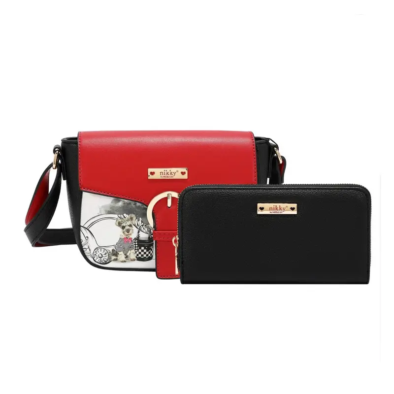 Discover the Nikky ANGEL FROM ABOVE 3 PIECE SET, featuring a backpack, mini crossbody, and wallet. This set combines functionality with style, perfect for everyday use. The red and black design adds a touch of elegance to your accessories. Ideal for those who appreciate practicality and fashion.