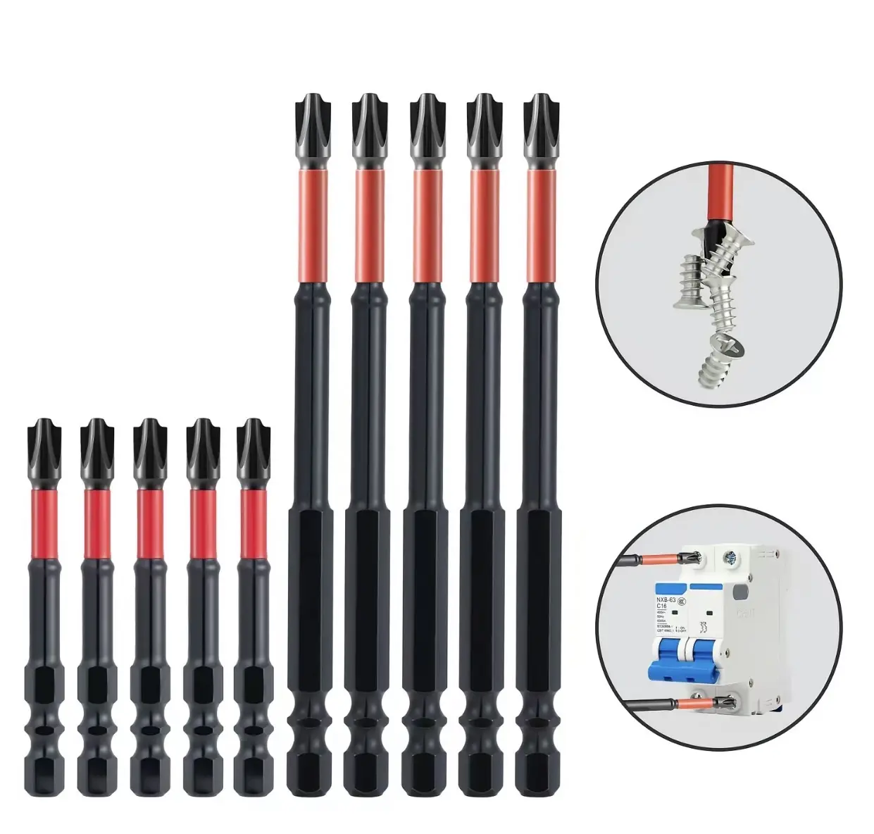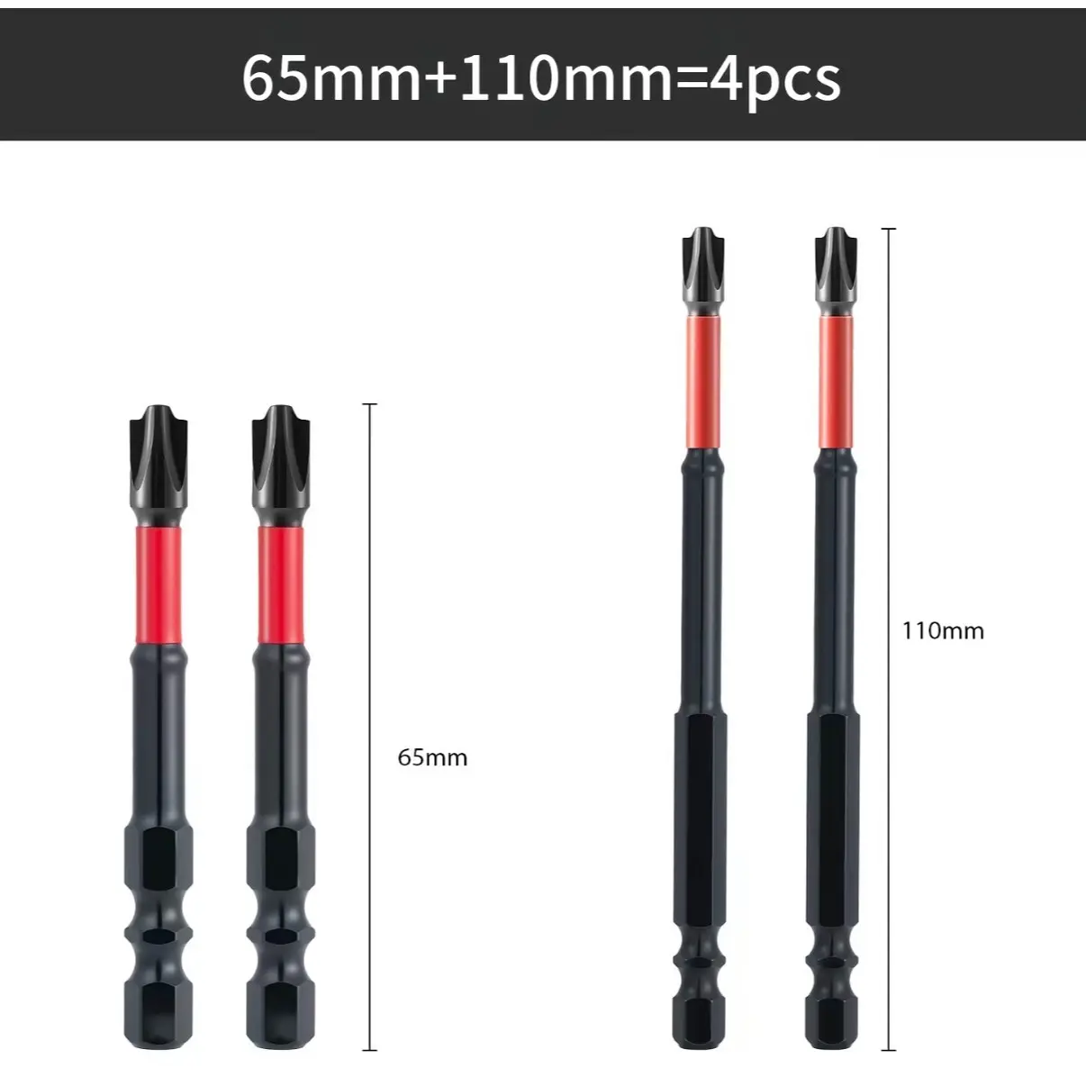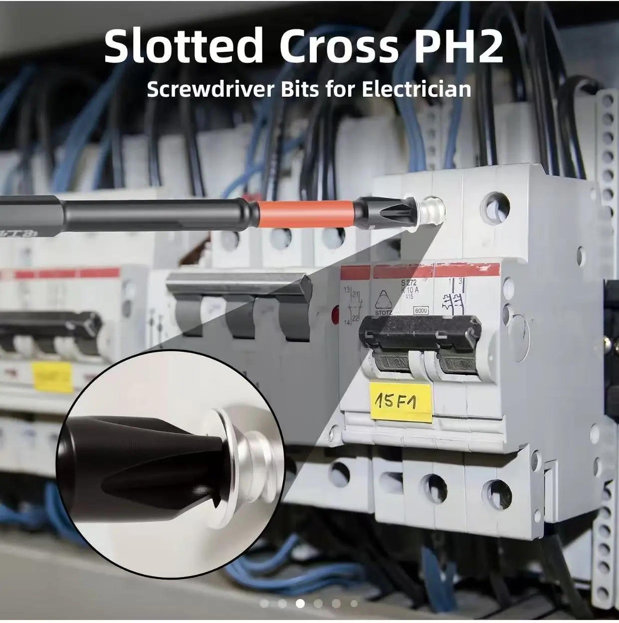 Impact Screwdriver Bit Set, Suitable for Electricians, S2 Steel Material, 65mm & 110mm Length, 1/4 Inch Hex Shank Magnetic Phillips Screwdriver Bits, for Circuit Breakers