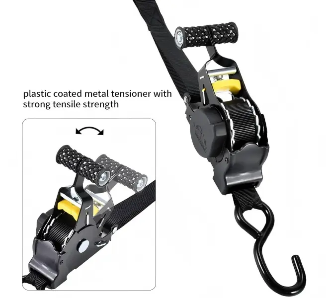 This 1in x 12.5ft strap features a self-retracting ratchet system for quick, easy setup. No more tangled straps! It automatically locks, saving time and effort. Perfect for motorcycles, ATVs, trucks, trailers, and more.