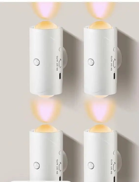 Rechargeable LED night light with human body motion sensor, RGB color-changing dimmable wall lamp, magnetic step lamp for bedroom, entryway, stairs, desk, or bathroom — indoor ambient lighting, plug-free, smart home lighting