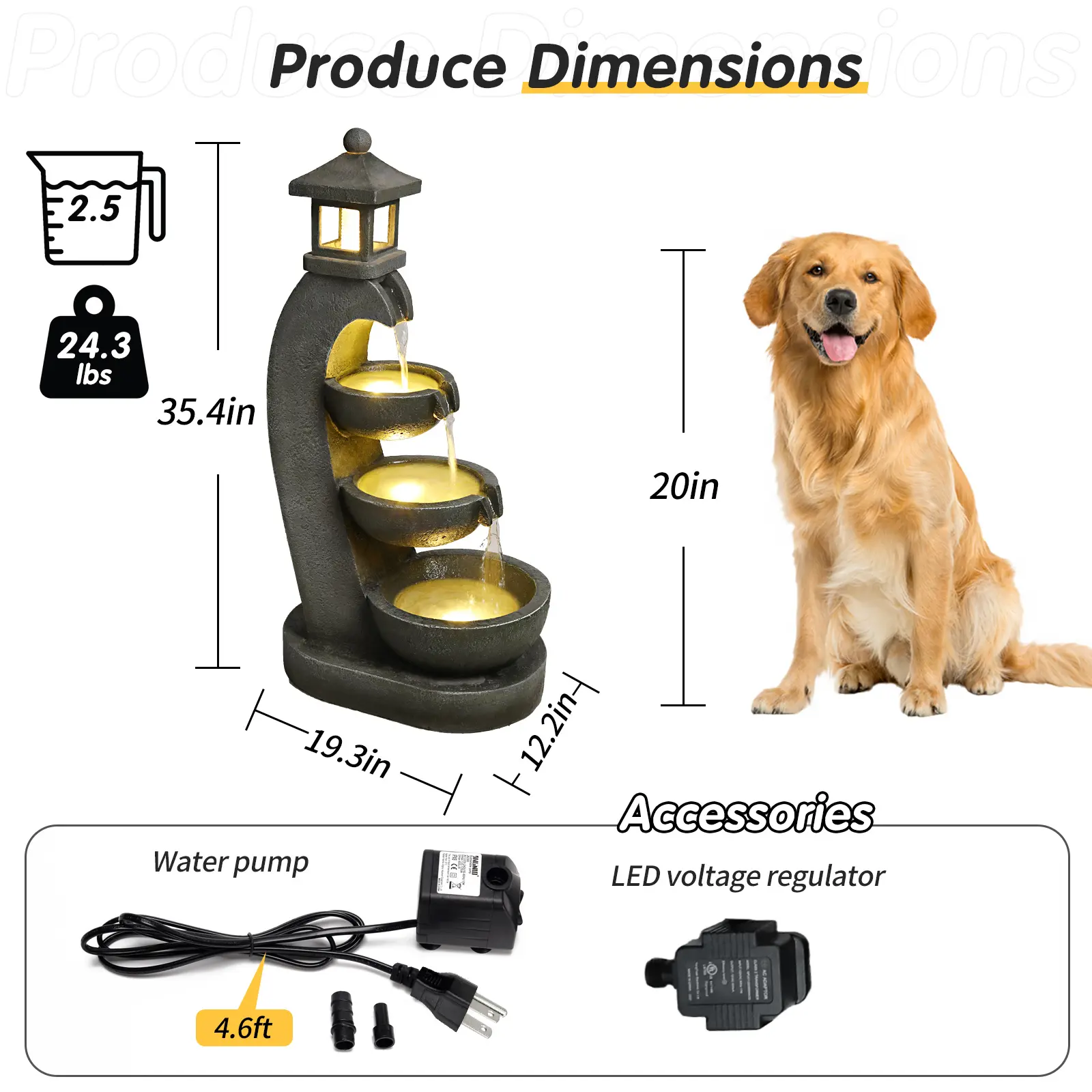 Durable Weather-Resistant Polyresin Construction: Crafted from high-quality polyresin with a textured, stone-like finish, this outdoor water fountain is built to withstand rain, snow, and extreme temperatures. It resists fading, cracking, and rust, ensuring long-term outdoor use without damage. A reliable choice for garden fountains outdoor that lasts through all seasons.