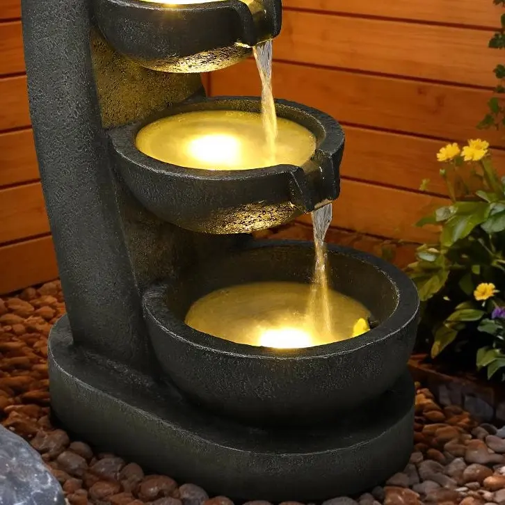 Energy-Saving LED Lighting for Nighttime Ambiance: This pagoda fountain features warm white LED lights embedded in the top pagoda-style lantern and three cascading basins. The soft glow highlights the flowing water, transforming your garden, patio, or porch into a tranquil oasis after dark. Ideal for outdoor fountain lighting and creating a relaxing evening atmosphere.