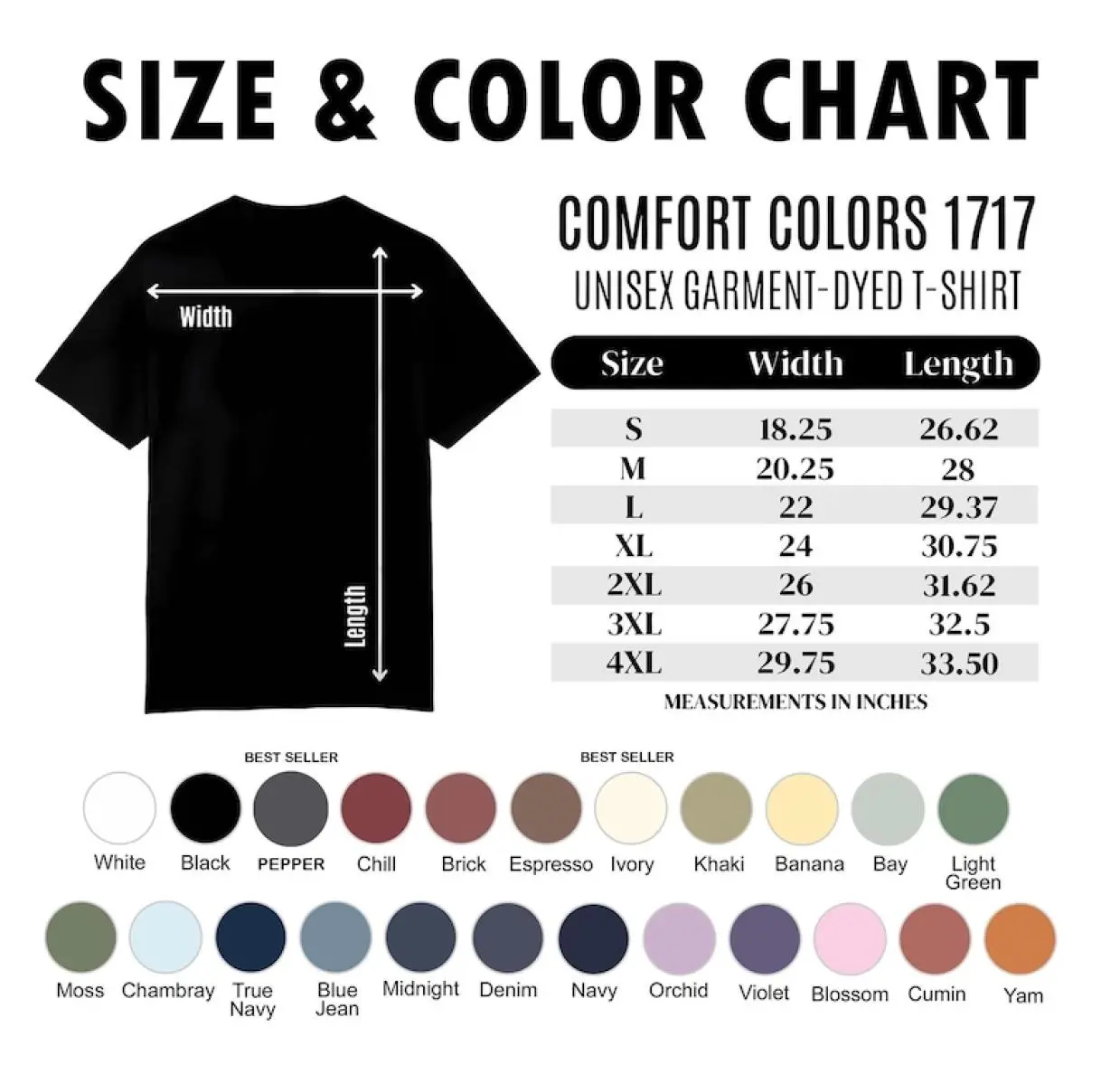 This product is printed on the Comfort Colors® 1717 Garment-Dyed T-Shirt, known for its premium quality and vintage washed look.