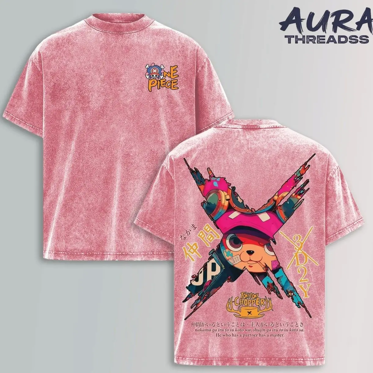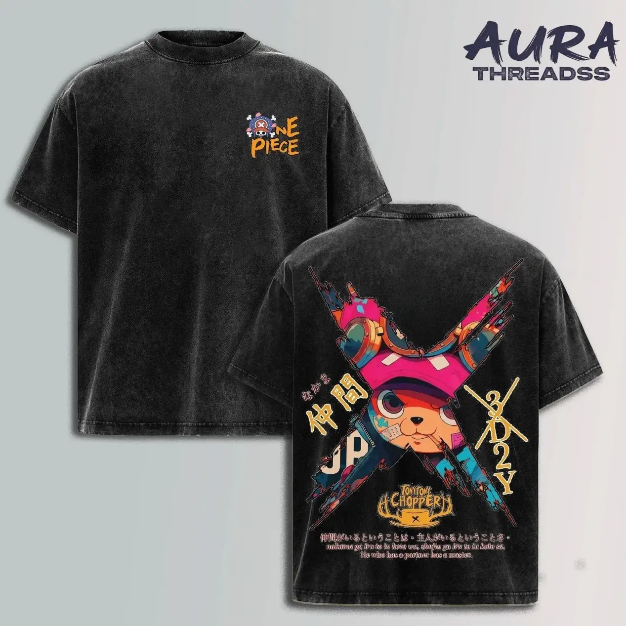 One Piece Tony Tony Chopper Anime T-Shirt, Vintage Washed Graphic Tee, Retro 90s Streetwear Oversized Shirt, Chopper 3D2Y Harajuku Style Manga Tshirt, High Quality Cotton Anime Merch for Men Women 0MF
