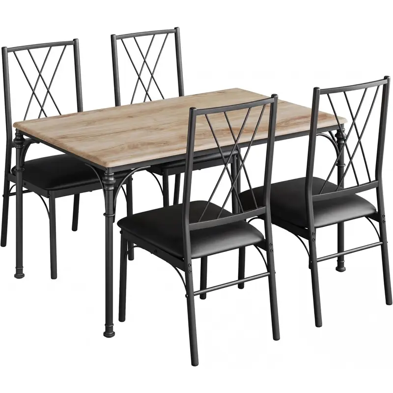 5-Piece Space-Saving Dining Table Set– Modern Metal & Wood Table and 4 Chairs – Compact Dinette for Dining Room, Apartments, Breakfast Nooks