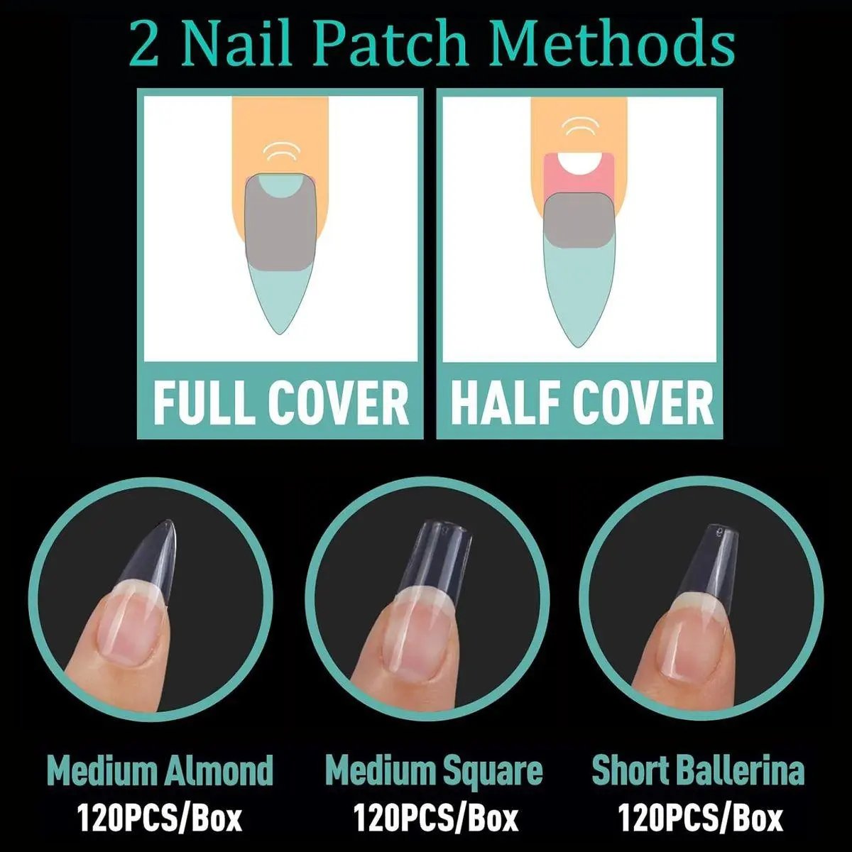 【3 STYLES 3 BOXES KIT】 360 Pieces nails includes popular shapes - medium almond, medium square and ballerina nails. Easily make salon nail effect. Enjoy DIY nail fun with your friend and family.