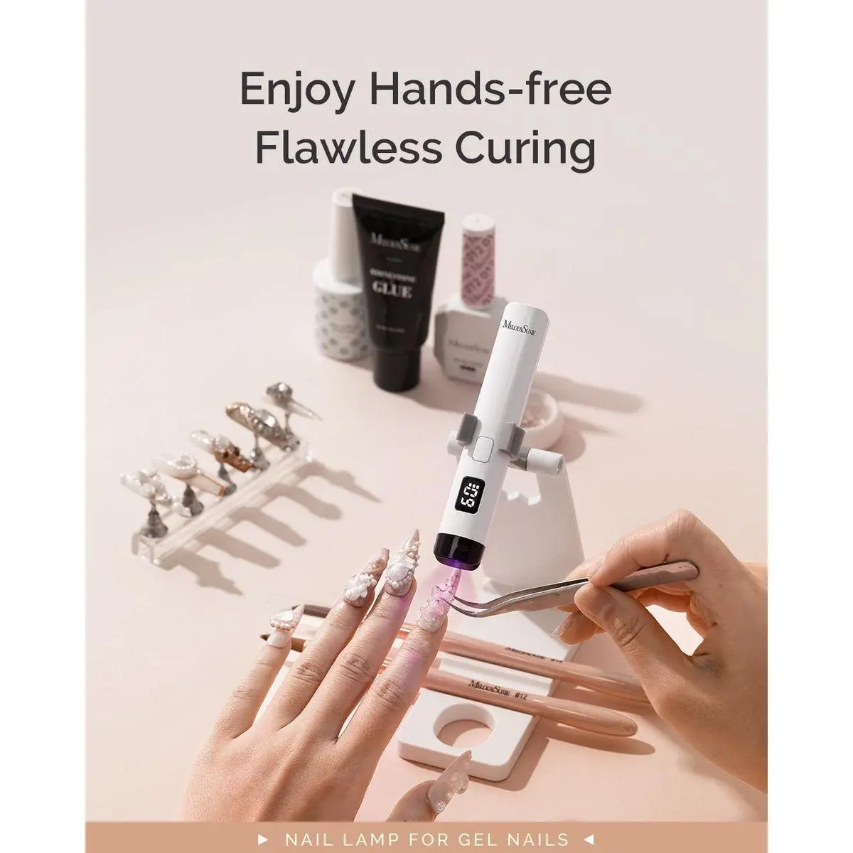 - FROM MELODYSUSIE HANDHELD UV LIGHT COLLECTION: Upgraded from ART01R flash cure light, ART01R with stand provides you flawless curing gel x nails experience with its intimate hands-free design. Equipped with cutting-edge 2025 innovative chips, it delivers five times the concentrated light, it’s especially suitable for fast-curing rhinestone glue, 3D gel nail designs, and decorations in just 10 to 20 seconds.