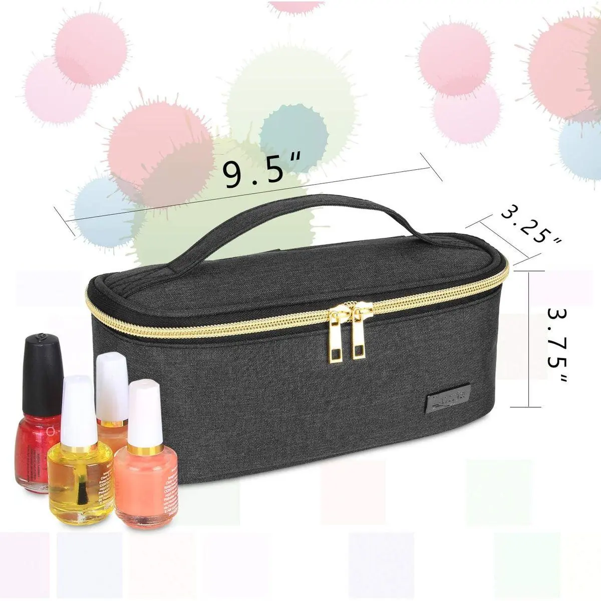 Compact size: 9.5" x 3.25"x 3.75". You can place this nail polish bag in your luggage easily.