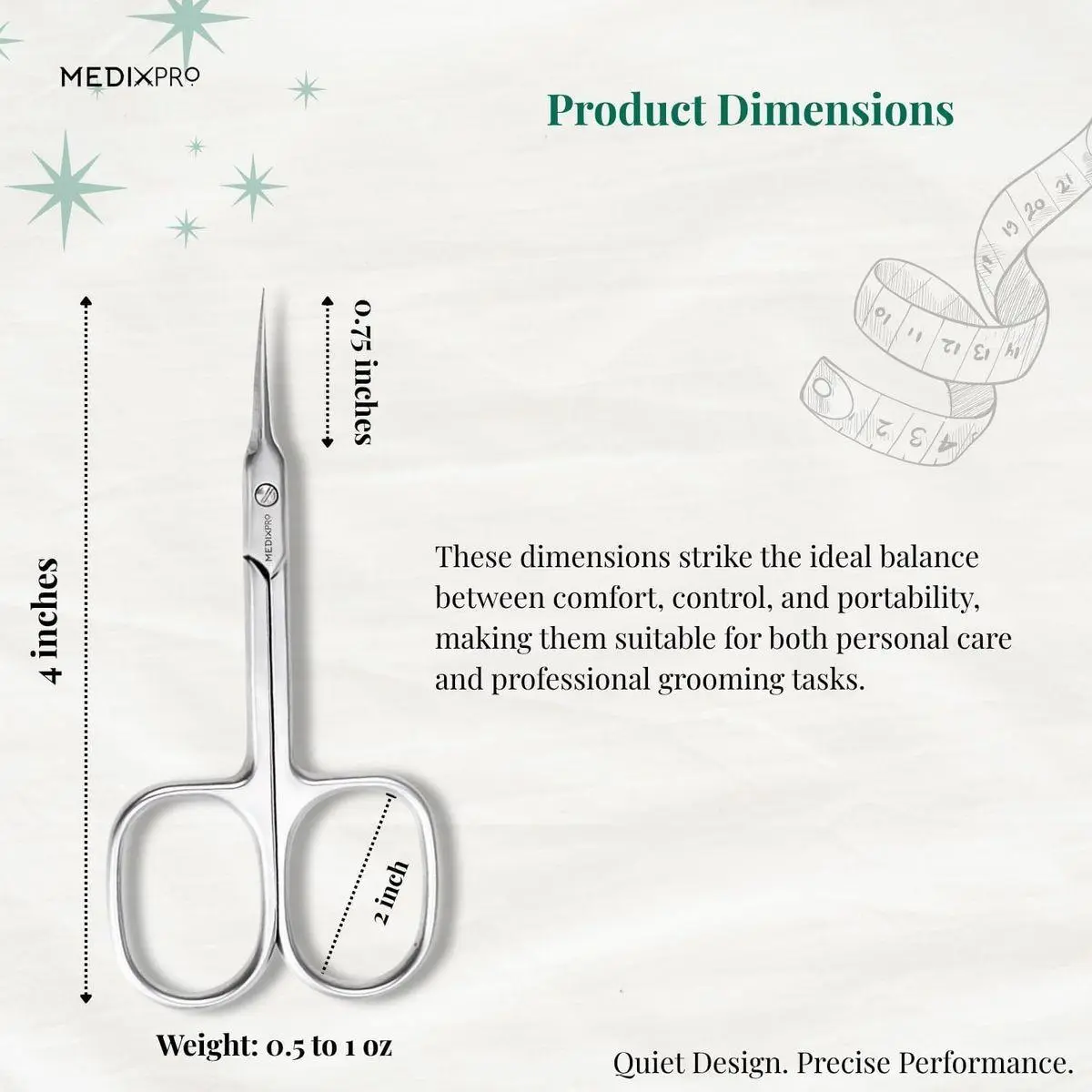 Ergonomic Design: Designed for control and comfort, these cuticle scissors feature wide, ring-shaped finger holes. The ergonomic design reduces hand fatigue, making them perfect grooming scissors for precision trimming tasks like eyebrows and facial hair.
