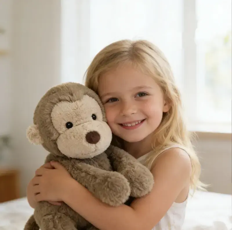 【Soft Plush Material】Made of high-quality plush fabric, soft and gentle to the touch, perfect for hugging and cuddling.【Adorable Monkey Design】Cute and lively monkey shape, a lovely companion for kids.