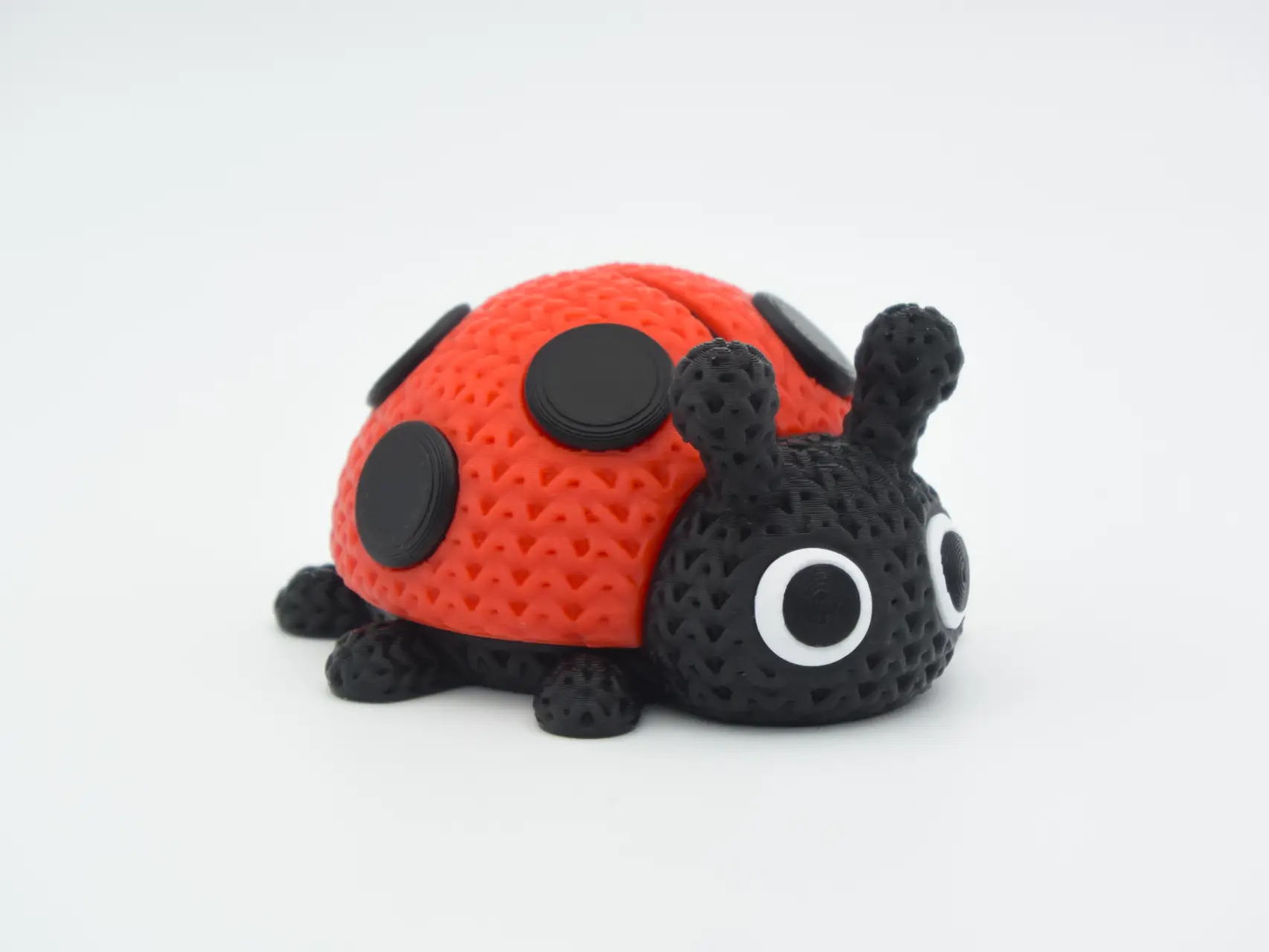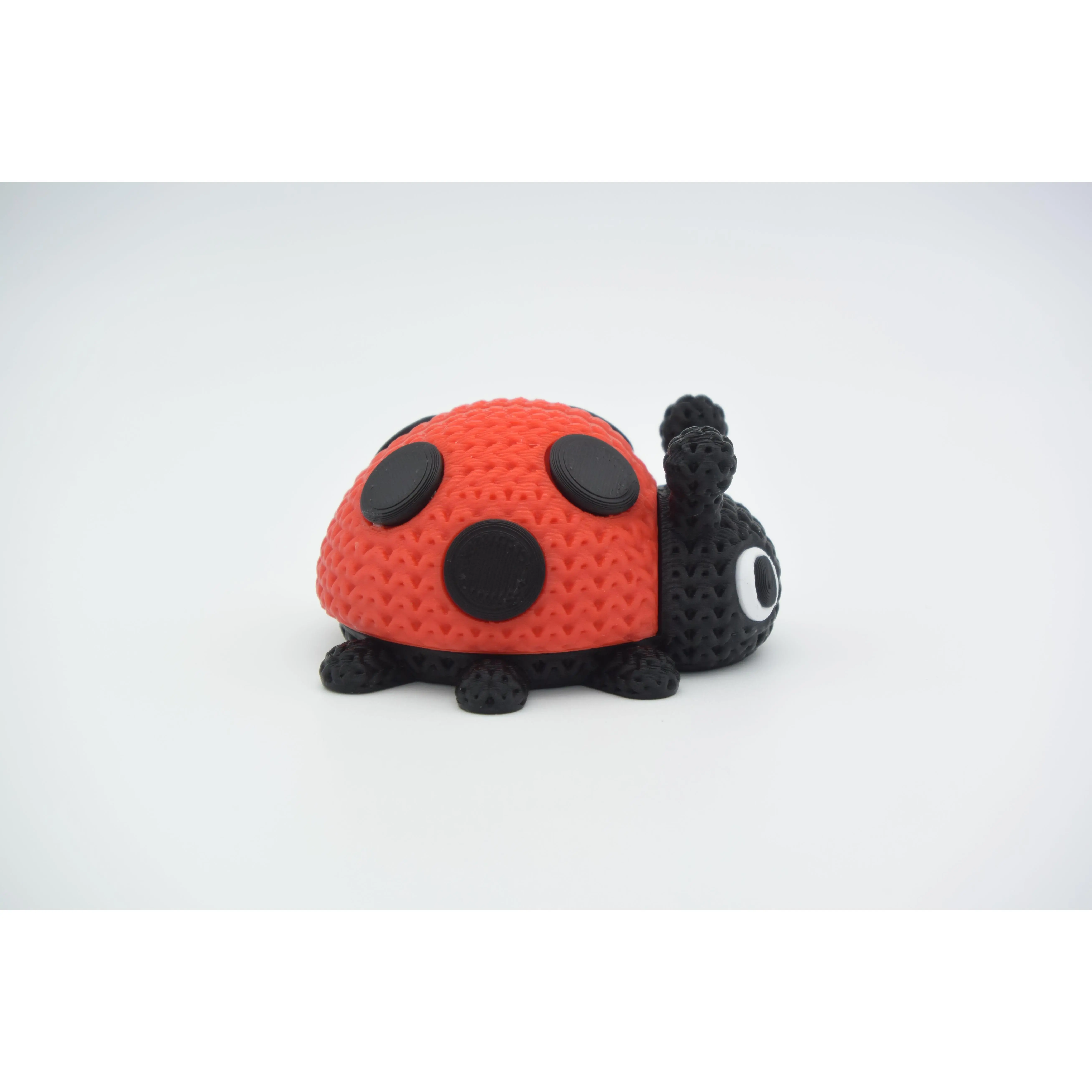 This Knitted Ladybug is an adorable 3D-printable creation that mimics the intricate look of a hand-stitched crochet toy. The model features a vibrant red shell adorned with classic black spots, a rounded black head with large expressive eyes, and tiny legs that give it a "friend-shaped" charm. Its highly detailed "yarn" texture provides a tactile, cozy aesthetic, making it a perfect decorative piece for a desk, a shelf, or as a thoughtful handmade-style gift for nature lovers.