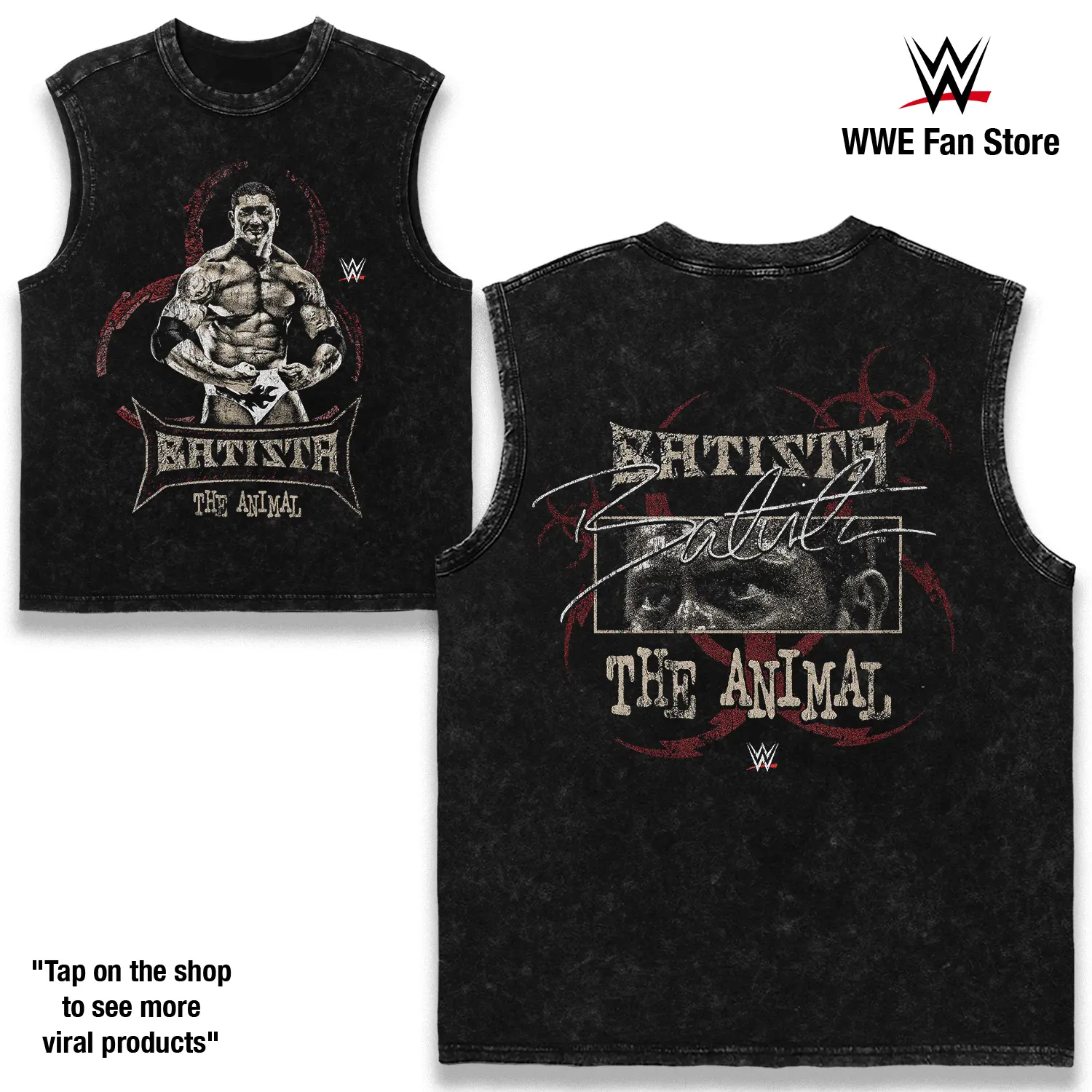 5. Batista The Animal Washed T-Shirt Wrestling Shirt WWE Fans WWE Tee Menswear Cotton Crewneck Premium American Made Acid Washed 100% Cotton