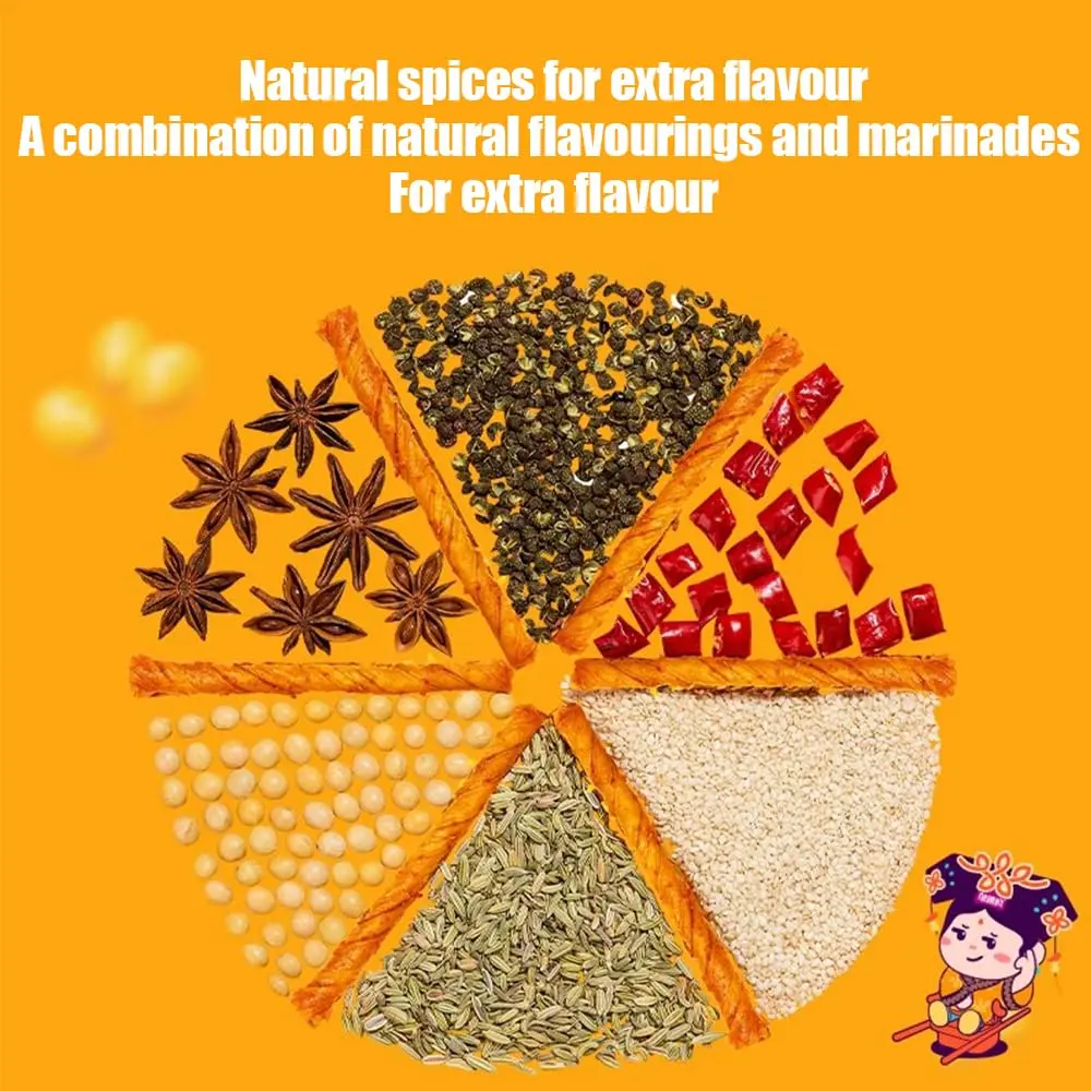 Water, Wheat Flour, Cereal Powder, Vegetable Oil, Sugar, Food Flavoring, Spices (Chili, Cinnamon, Laurel, Star Anise, Grass Fruit, Onion, Ginger, Garlic, Cumin, Sesame)