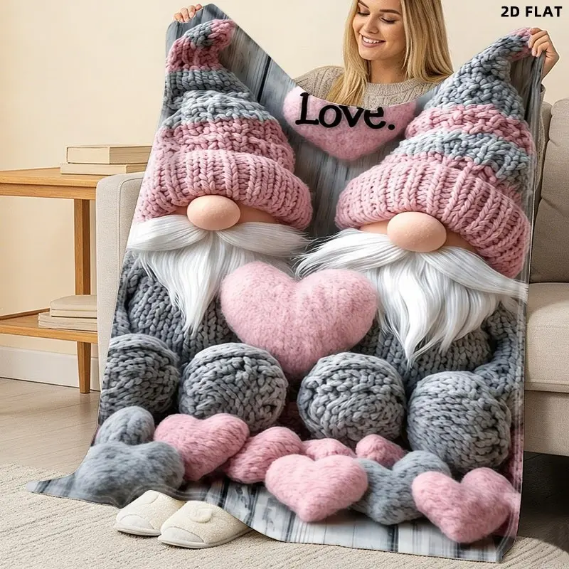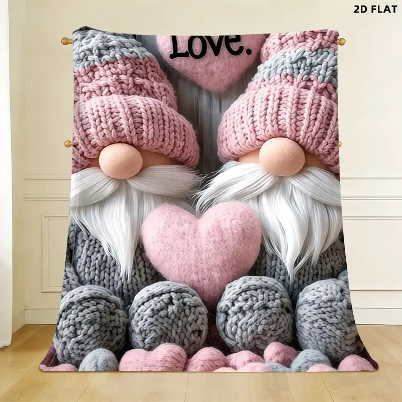 Cozy Love-themed Knitted Gnome Throw Blanket, Single-sided Printed, Multiple Specifications Available, Perfect for Napping & Relaxing, Soft Flannel Material, Ideal for Adults, Adds Warmth & Charm to Home, Office & Travel
