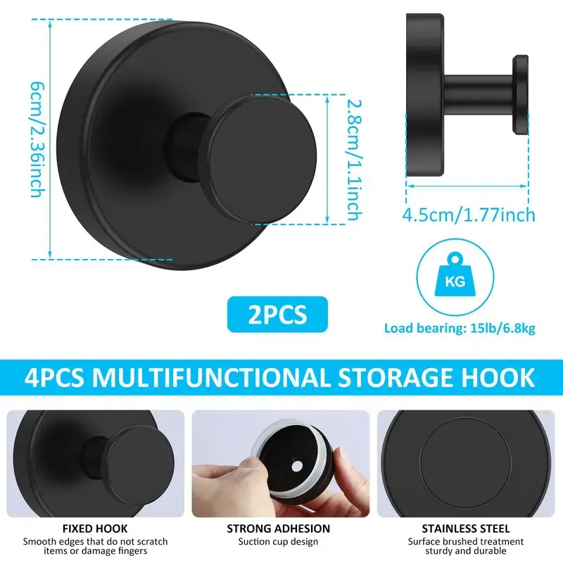 Stainless Steel Suction Cup Hooks No-Drill No-Damage Vacuum Suction Hooks for Kitchen Bathroom Bedroom Essentials 15 lbs Capacity Matte Black Organiser