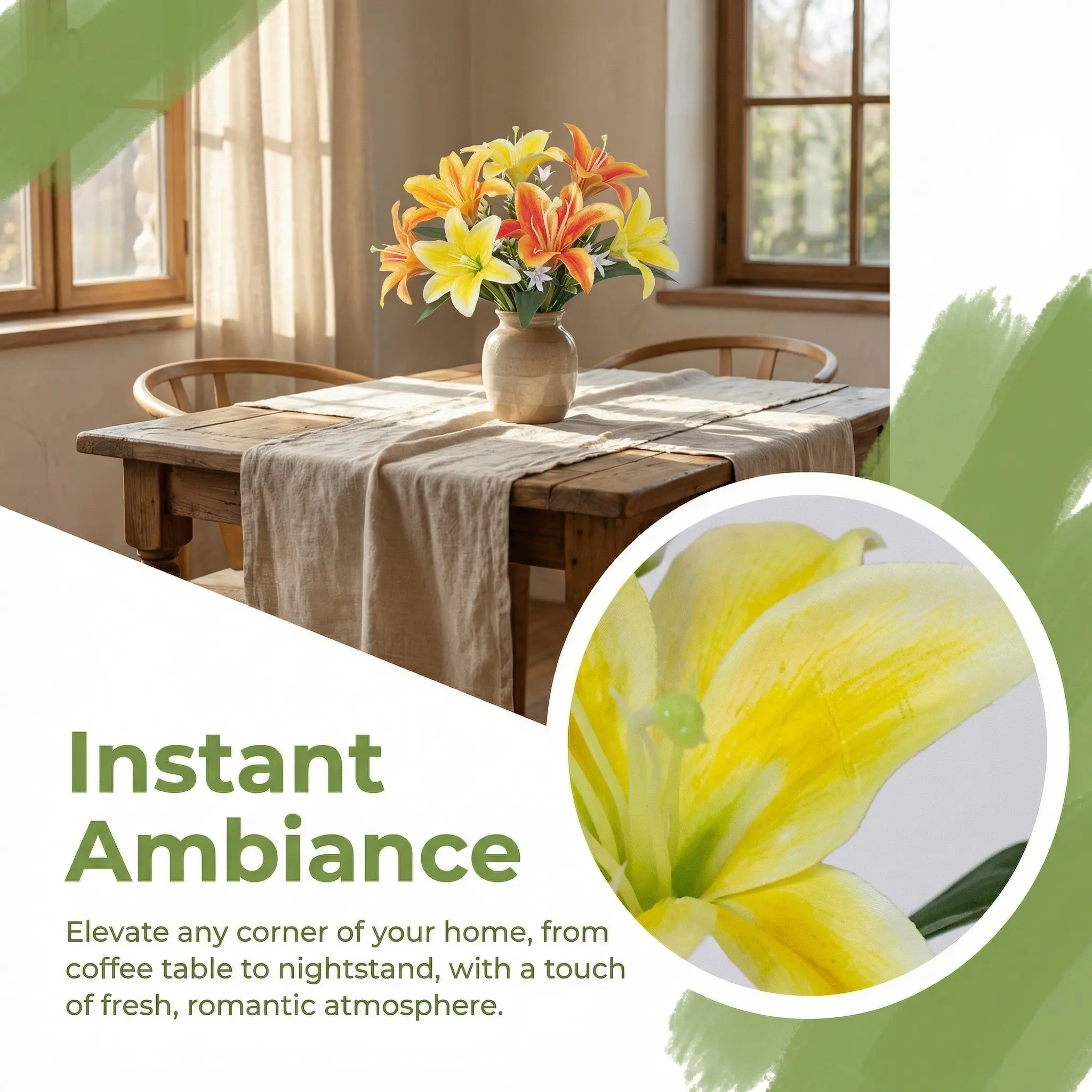 【Realistic Appearance】: These artificial lilies and star gazers mimic real flowers, adding a natural touch to any setting.