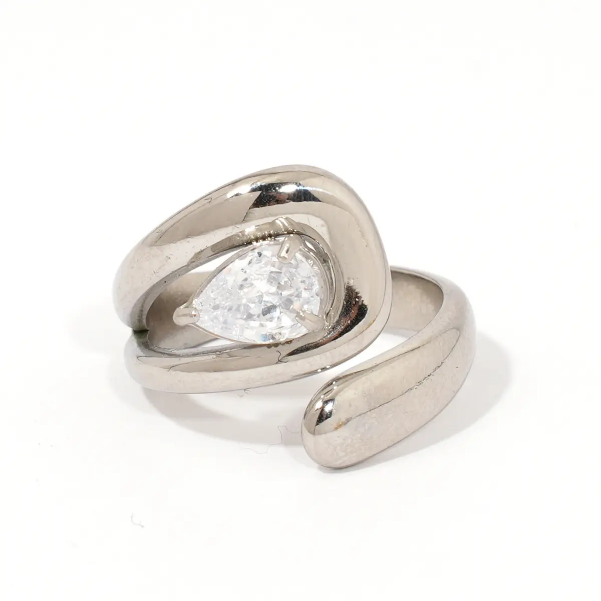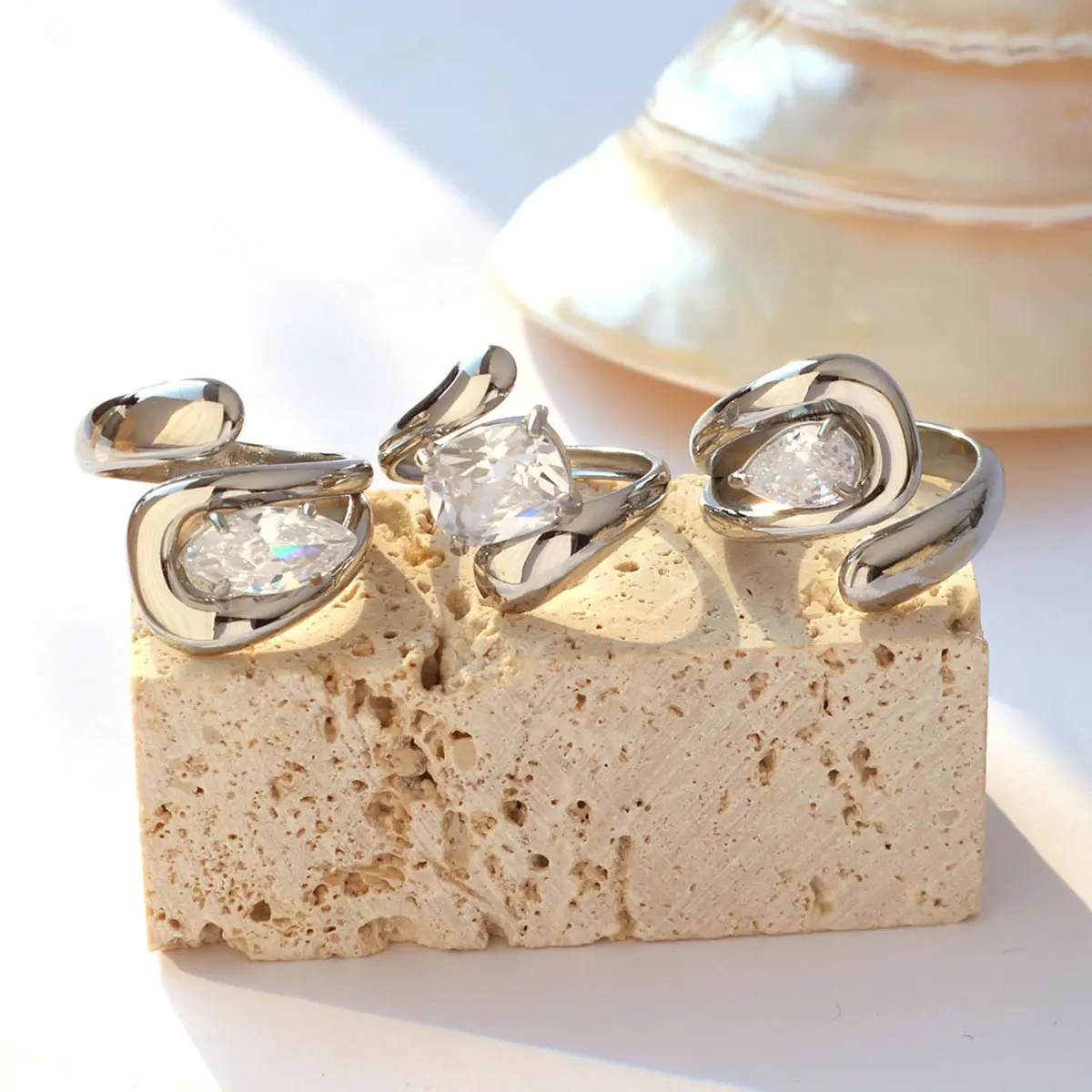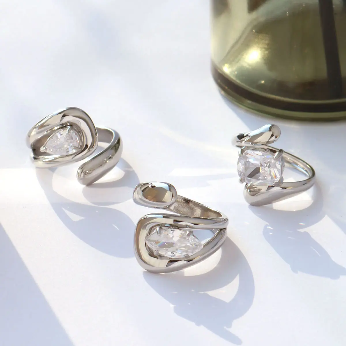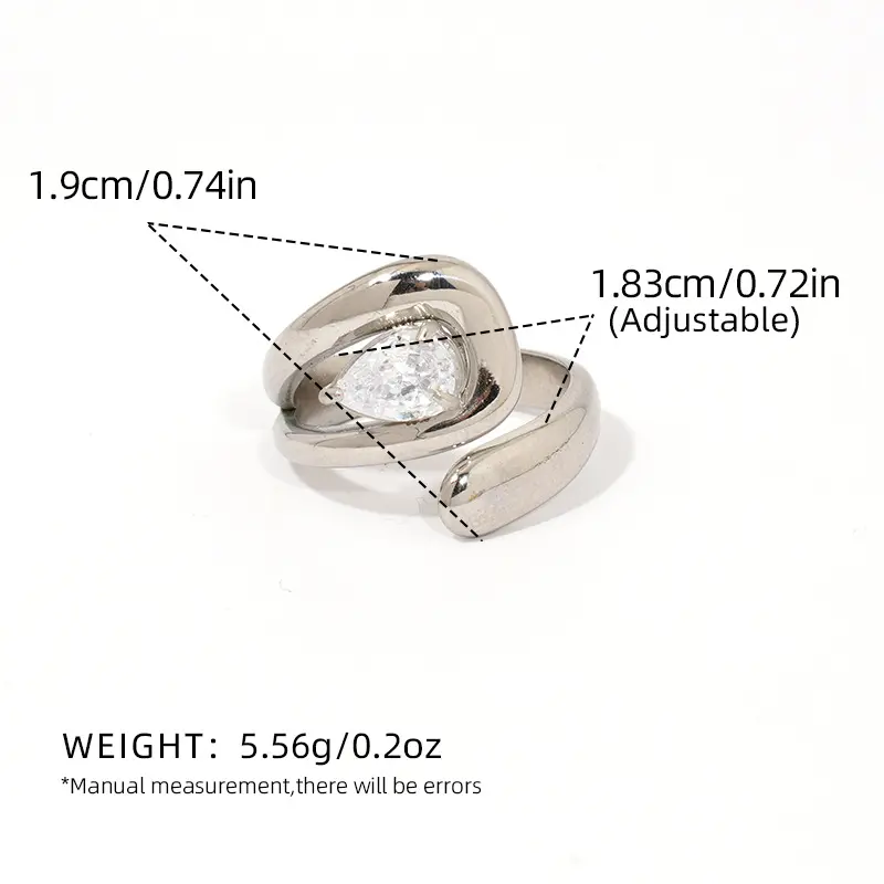 Plated Zircon Ring for Women, Stainless Steel Titanium Adjustable Fine Jewelry, Elegant Modern Aesthetic, Office Travel Anniversary Gift for Wife Sister Gold-Plated Striped Couple Stacking Minimalist