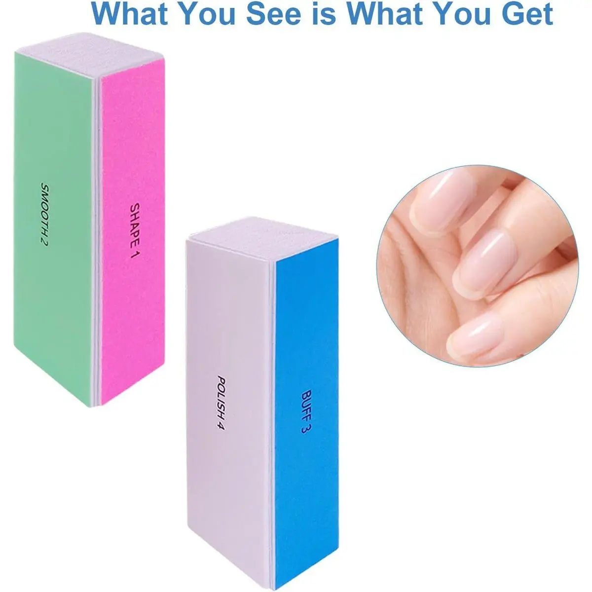 What You Get: Our nail buffer and shine kit will come with 10 pieces of nail buffer blocks with 4 way 120/240/600/3000 grits of 4 sides. Get glass-like shining nails in just 30 seconds! We are confident that you will love the quality of our buffer block nail files. Just try it at our expense and enjoy the professional quality nail care experience.