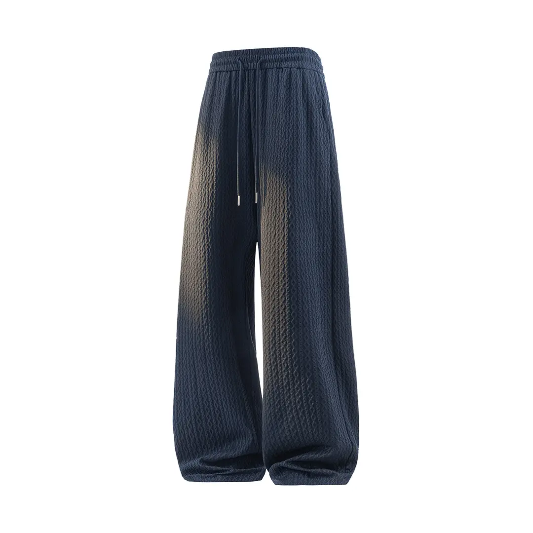 Men's Textured Waffle Knit High Waist Wide Leg Pants, Casual Loose Track Pants, Streetwear