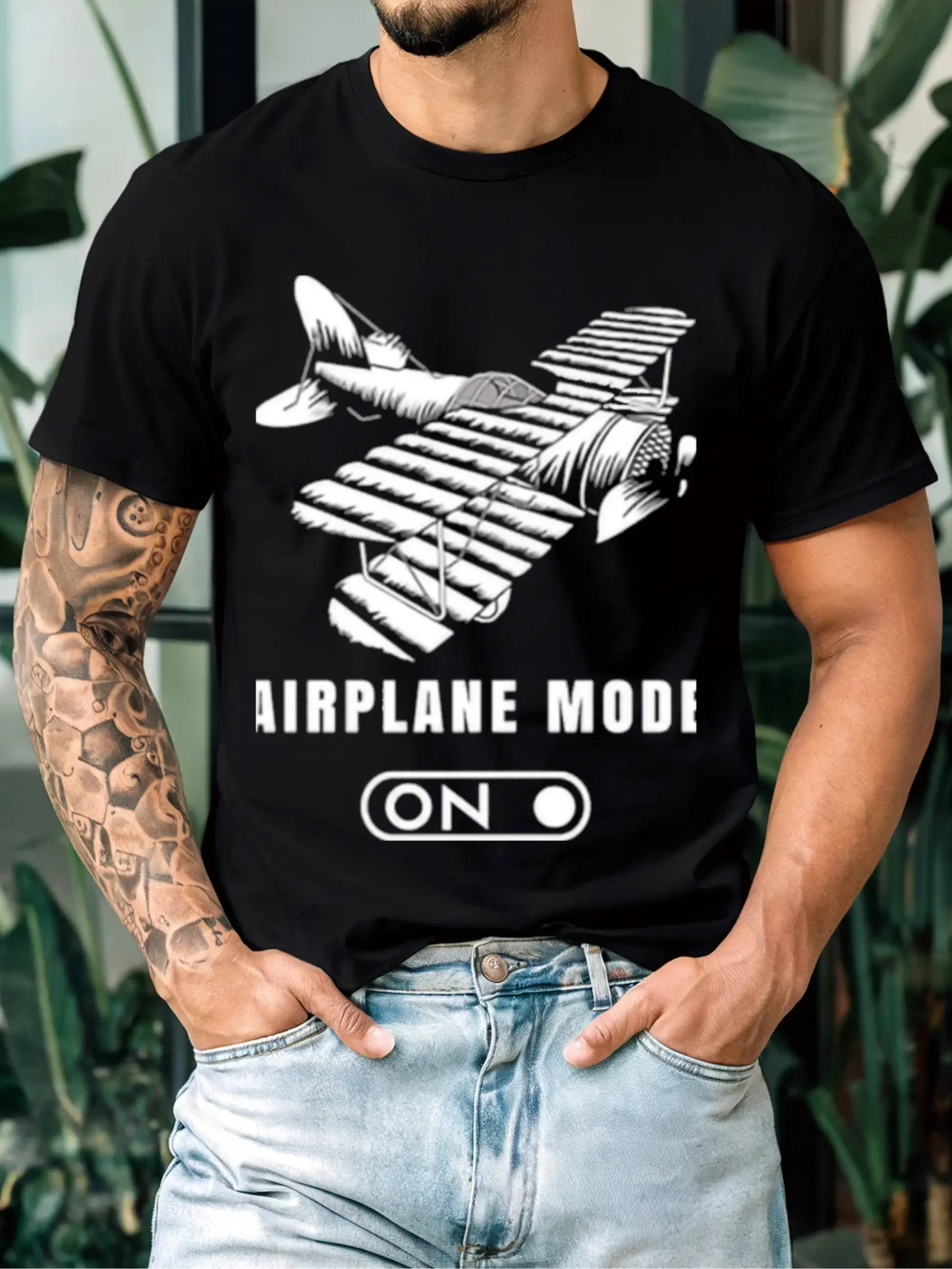 [100% Cotton] [Graphic Tee] Airplane Mode On Graphic Tee Funny Travel Shirt Vintage Plane T Shirt Casual Streetwear Cotton Summer Outfit Men Women