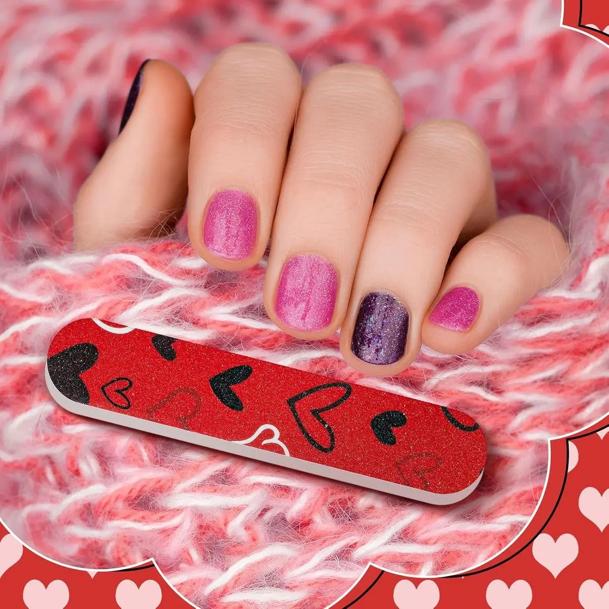 Double Sided Feature: ingeniously designed with a double sided feature, these valentines nail files bulk are highly effective for shaping and buffing nails; The bi-face functionality contributes to a more complete manicure or pedicure, improving your nail care regimen
