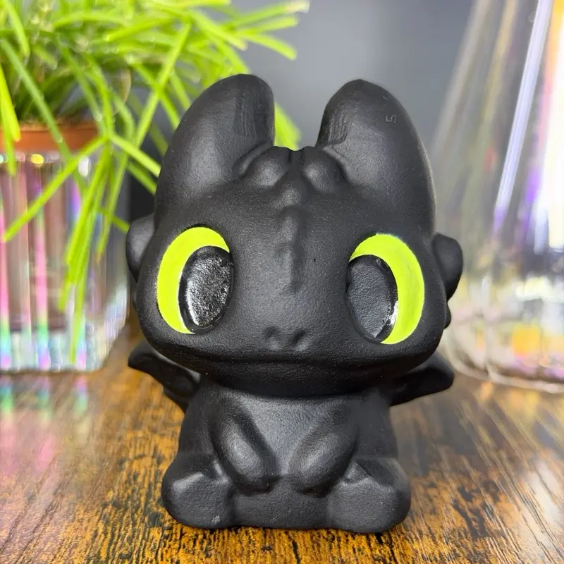 Inspired by Toothless from How to Train Your Dragon, this carving captures the character’s big-eyed charm and playful personality in a compact, collectible form. The hand-painted neon green eyes add a bold pop of color and bring the piece to life, making it a standout display item for any dragon or fantasy lover.
