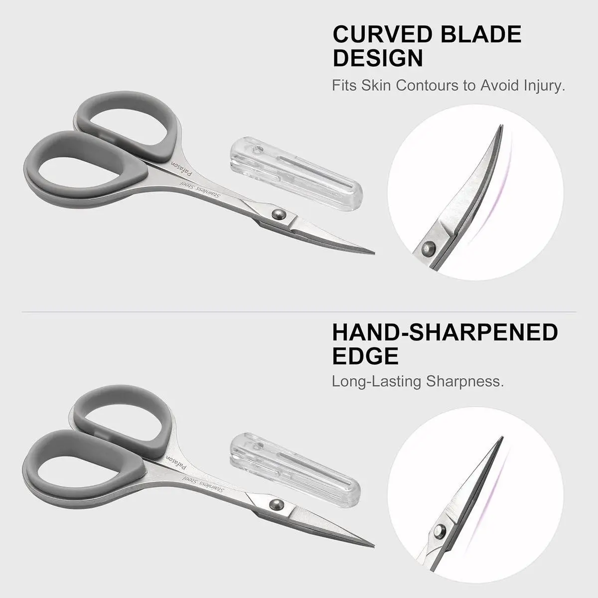 Specialized Beauty Use for Eyelash and Eyebrow: The sharp, fine tips are expertly designed for delicate facial Beauty tasks. The Straight tip is ideal for precise hair length trimming (like Eyebrow shaping), while the Curved tip safely contours around the eye for accurate Eyelash trimming.
