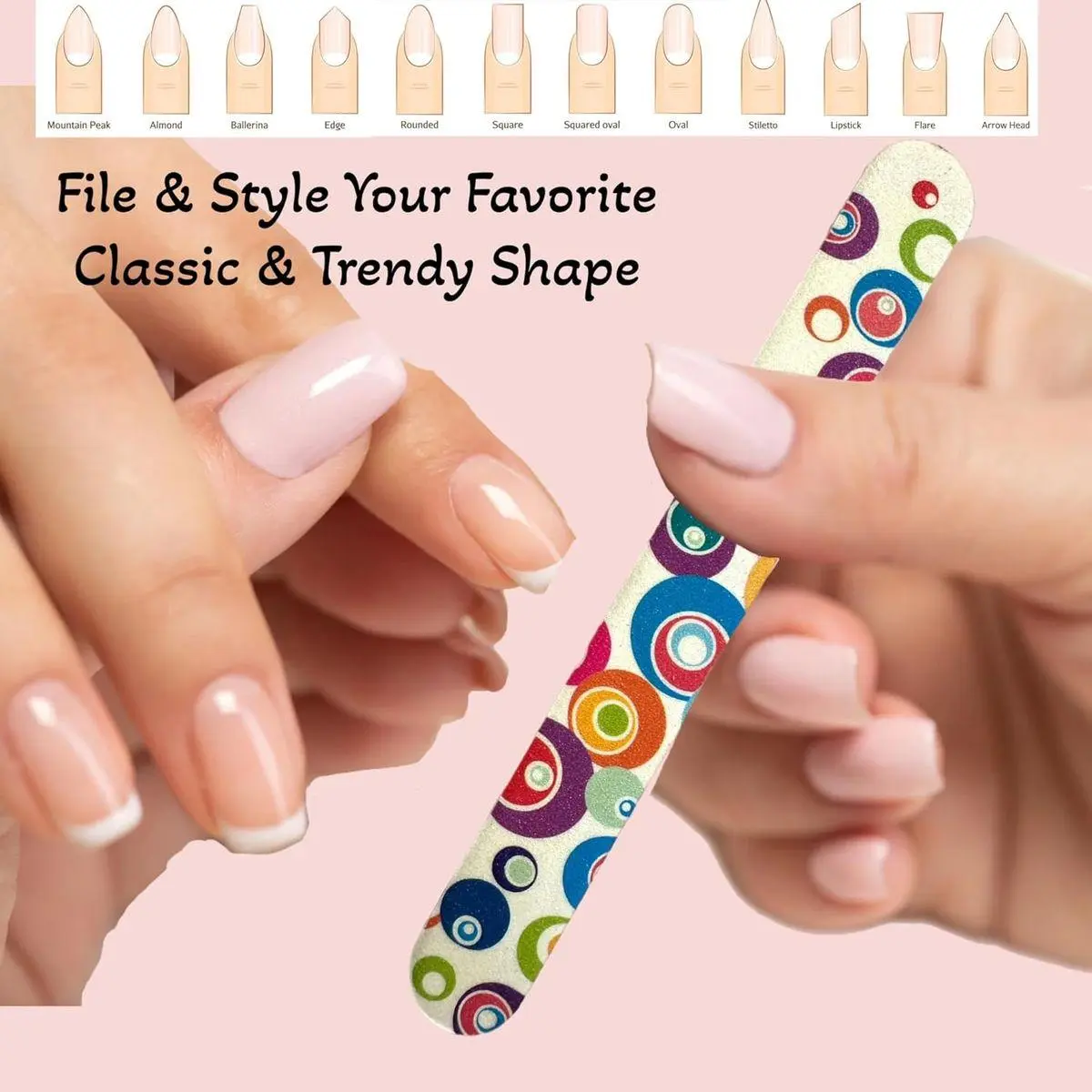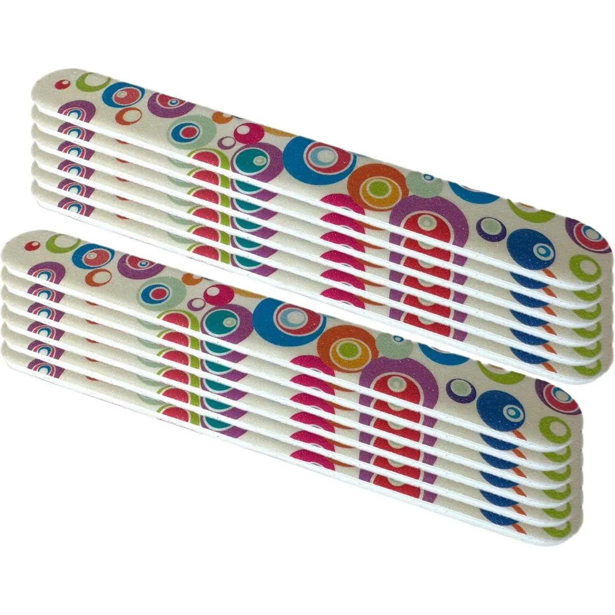 4. Set of 12 Dual-Sided Nail File Emery Board Heavy Medium Grit Cushioned Washable Easy Grip Comfortable Filing Smoothing Finishing Nails 6.5” Travel TSA Approved (Retro Circles)