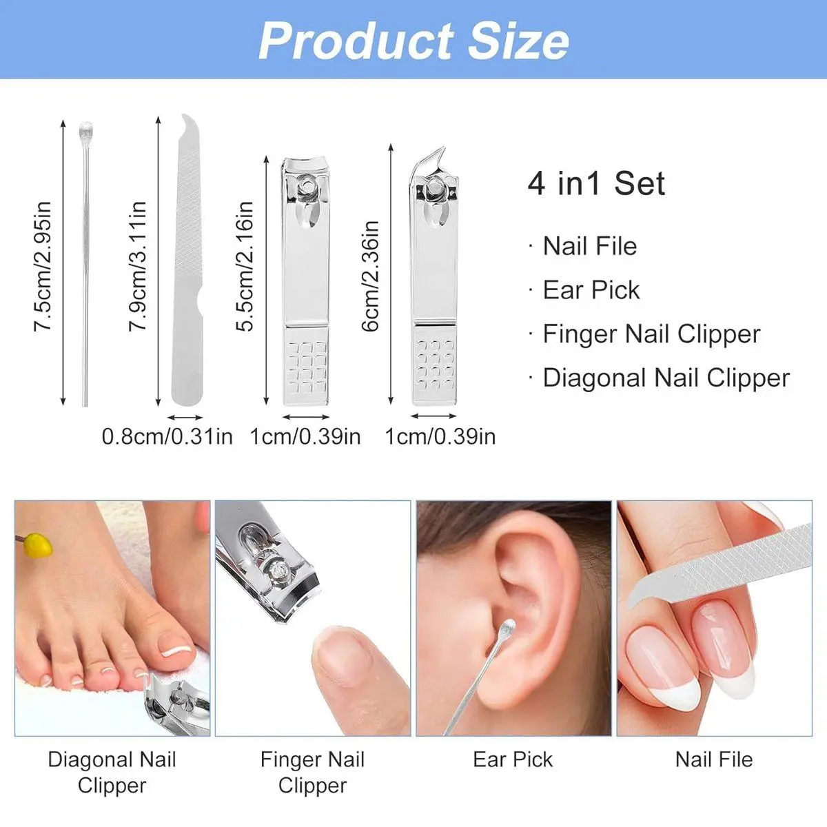 Sufficient Quantity: The manicure set, which includes Finger Nail Clipper , Diagonal Nail Clipper, Ear Pick, Nail File and totals 30 sets, has sufficient quantity and tools to meet the daily changing needs of yourself and the whole family, as well as the needs of guests.