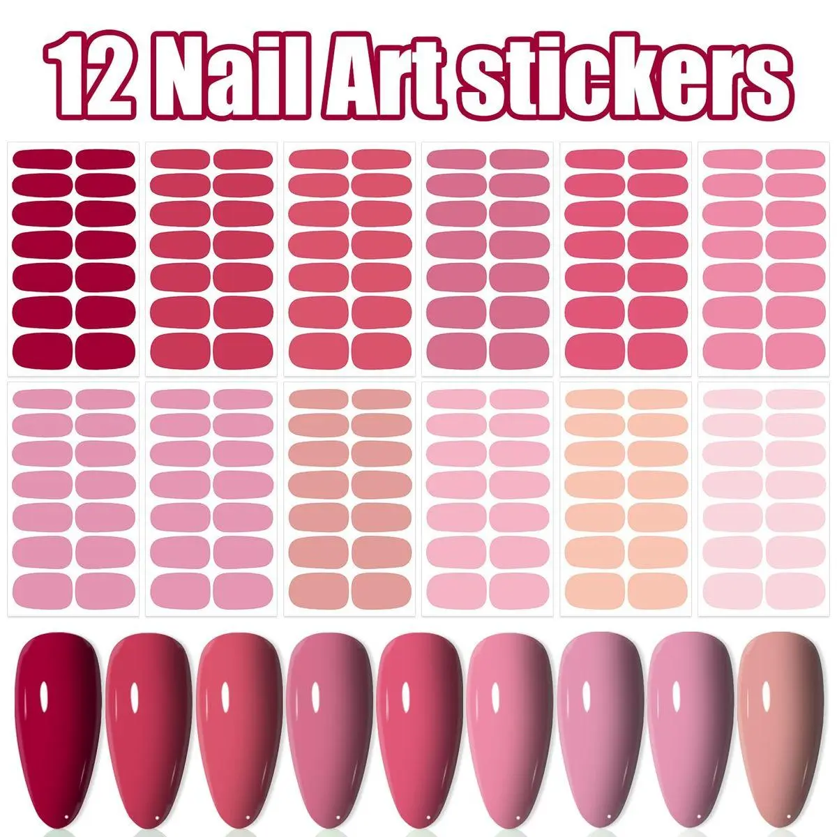 12 SHEETS SOLID RED/PINK NAIL STRIPS:These full nail wraps including various different solid red color, from light pink to dark red, that are fashionable to use one sheet or mix up with different style everyday, make your nails more dazzling and unique.