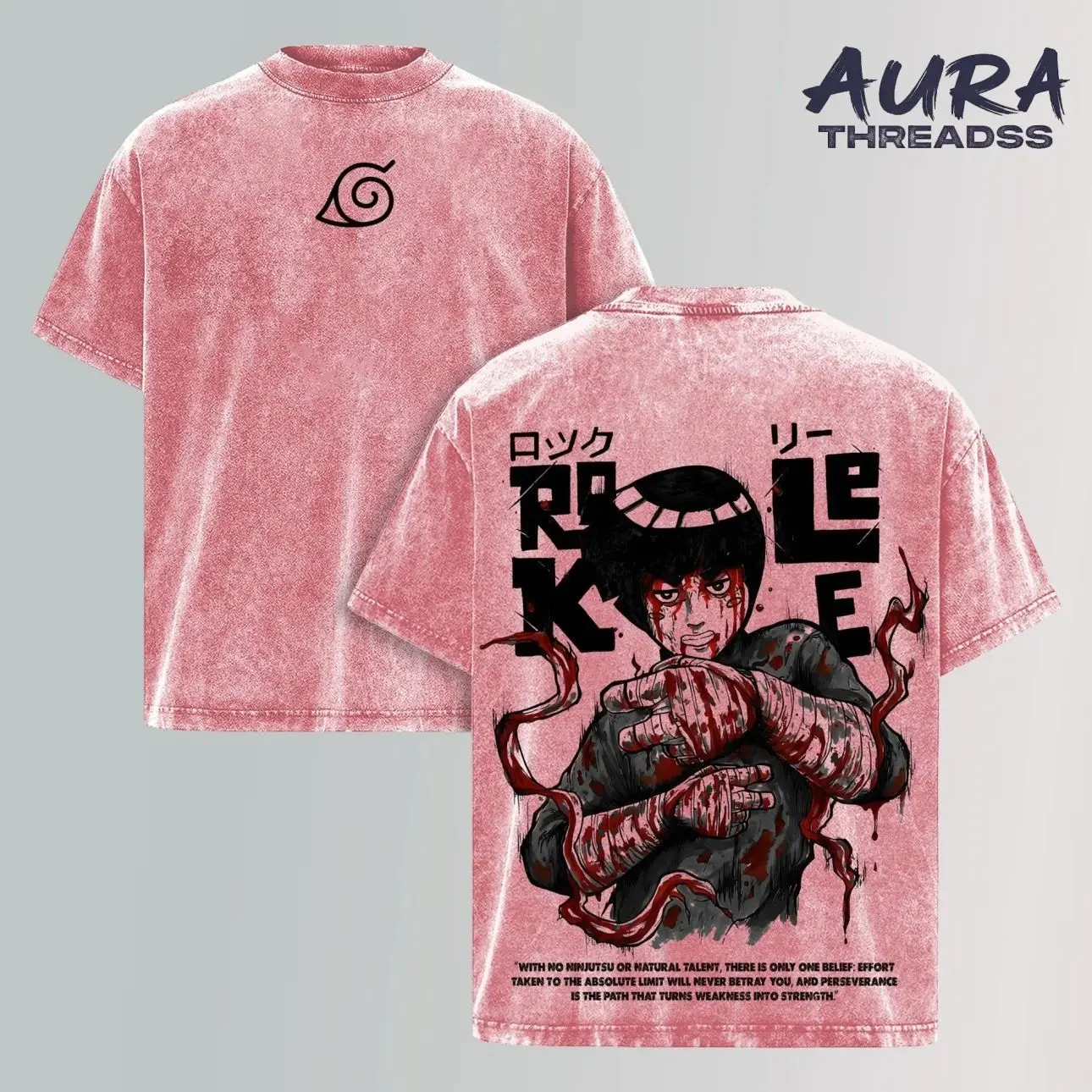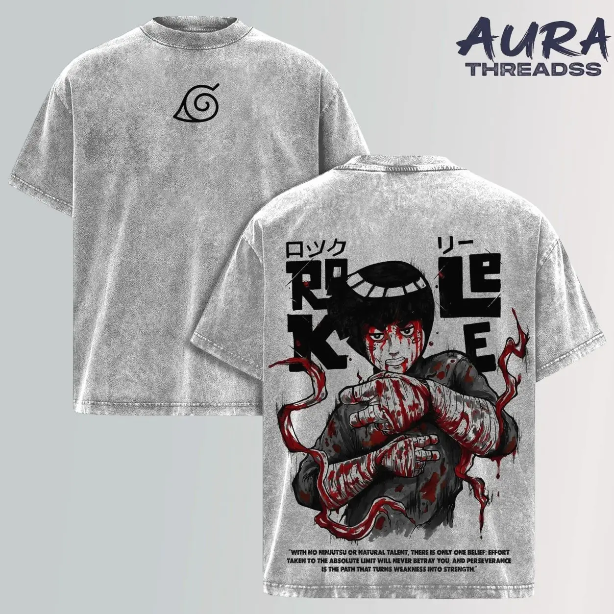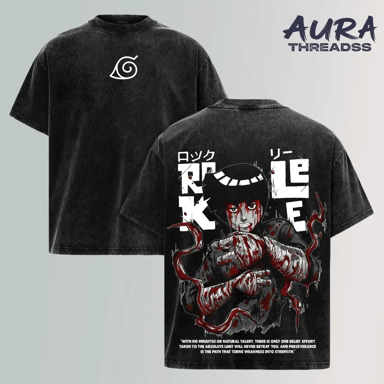 Rock Lee Tee Washed – Naruto Anime Manga Vintage Washed Heavy Cotton Oversized T-Shirt & Hoodie, Double Printed Retro Unisex Streetwear Graphic Top, Taijutsu Fighter Edition, Loose Fit Multi-Color Anime Merch 7VM