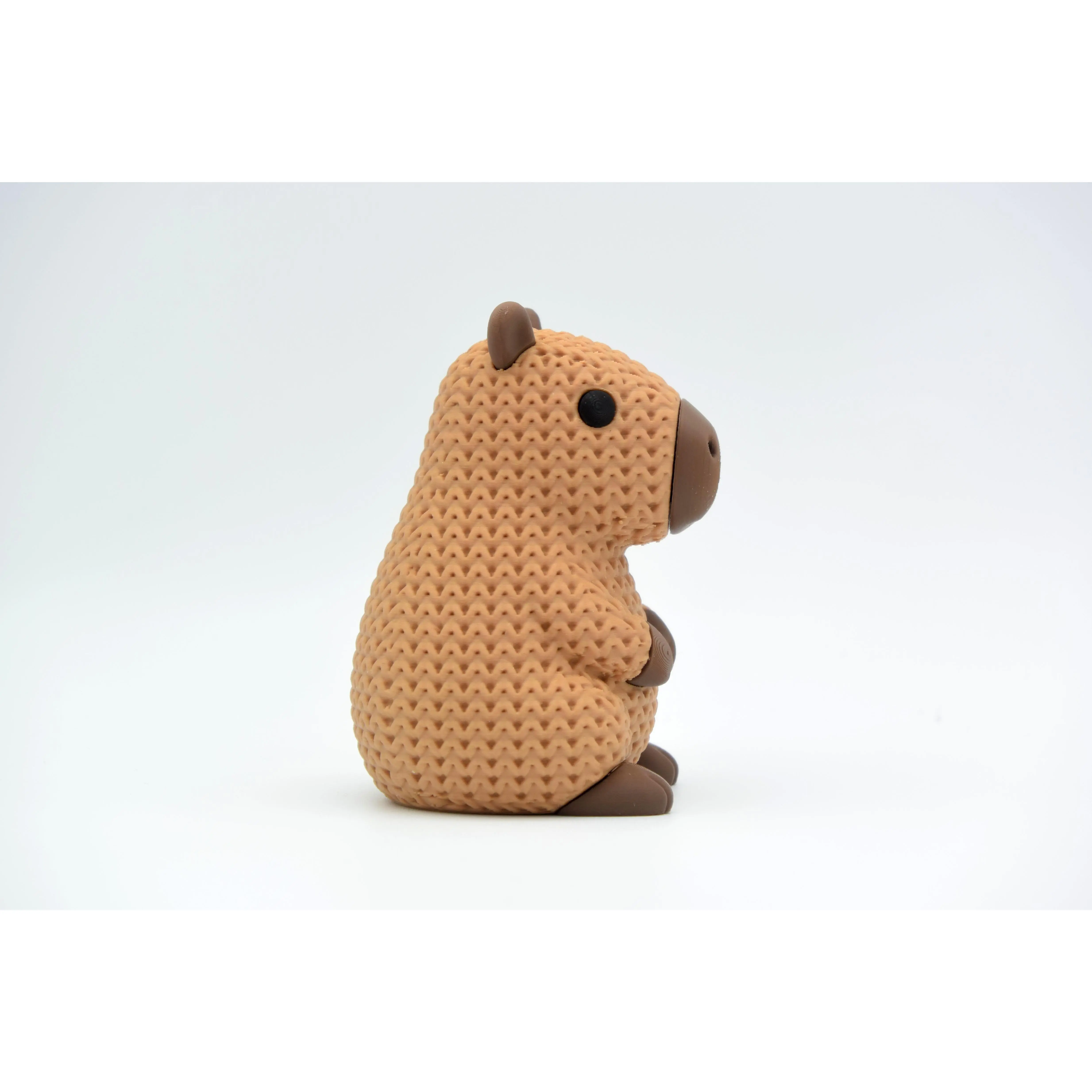 This Knitted Capybara is a charming 3D-printed model that perfectly captures the cozy, textured aesthetic of a handcrafted crochet toy. With its intricate "knitted" surface detail and adorable expression, this "friend-shaped" rodent is a popular choice for hobbyists looking to create a unique desk companion or a heartwarming gift