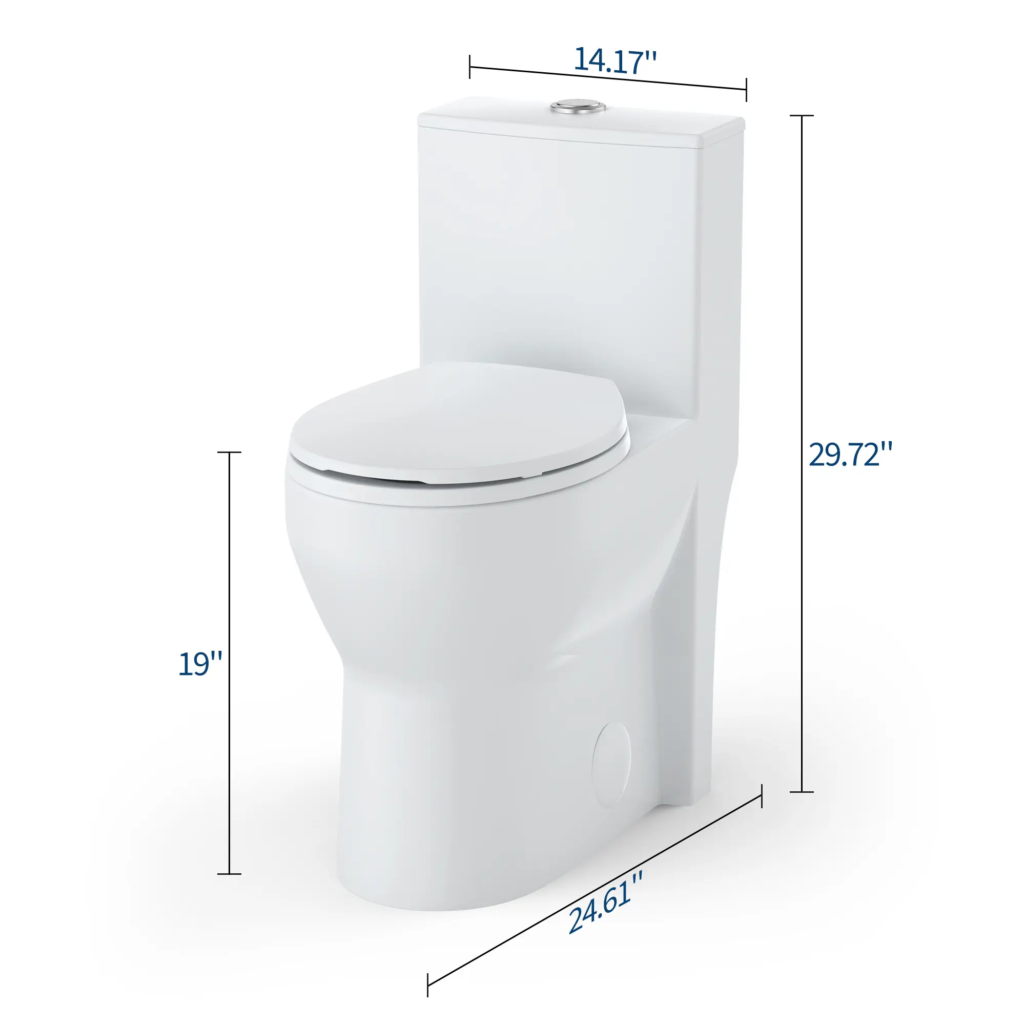 ·Complete Toilet Set with Premium Soft-Close Seat This is a complete bathroom solution, including the one-piece toilet and a premium slow-close seat. The seat closes gently and quietly to prevent slamming, enhancing safety and comfort.
