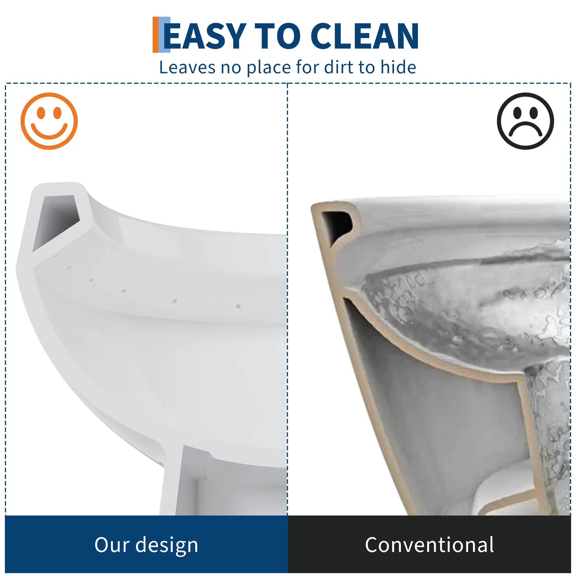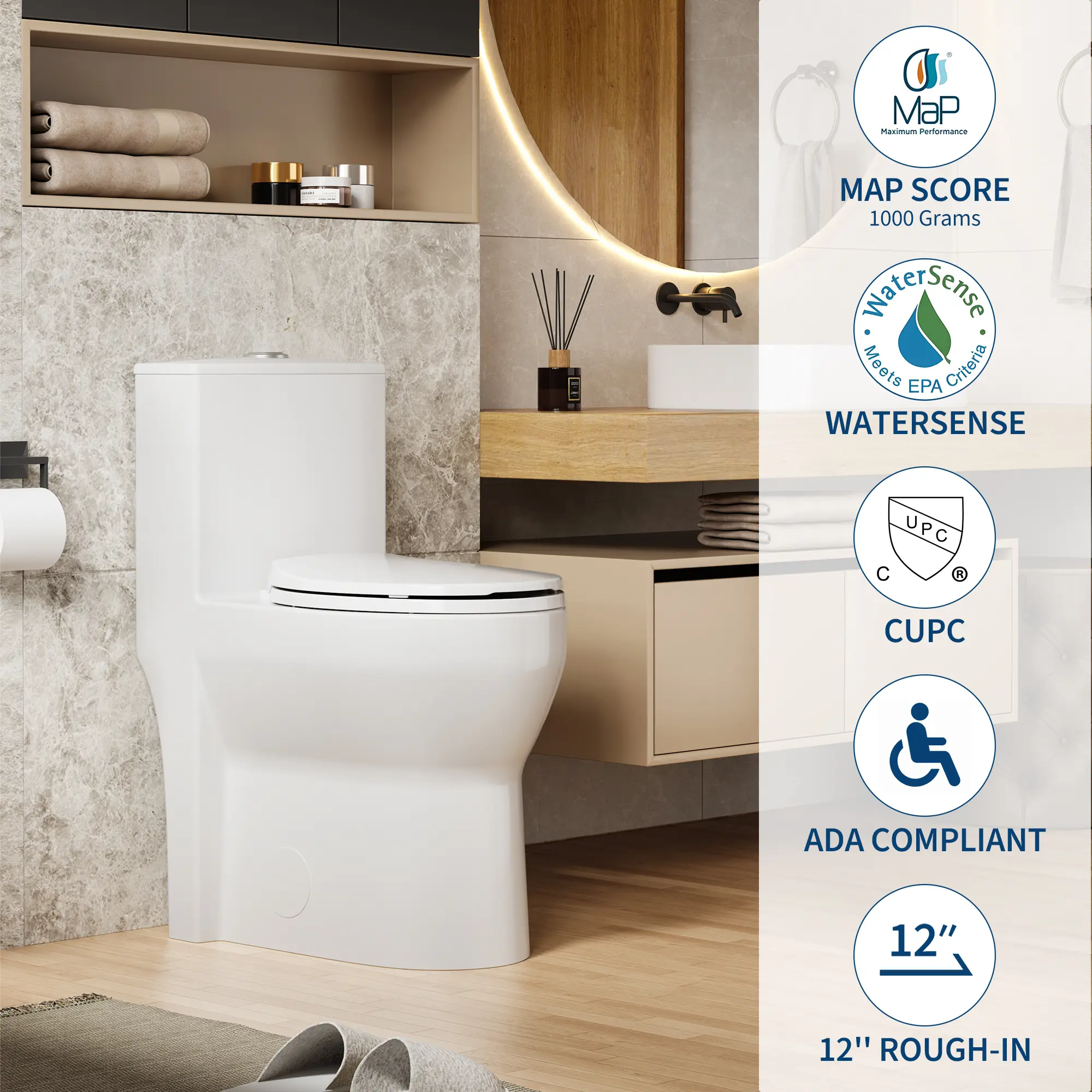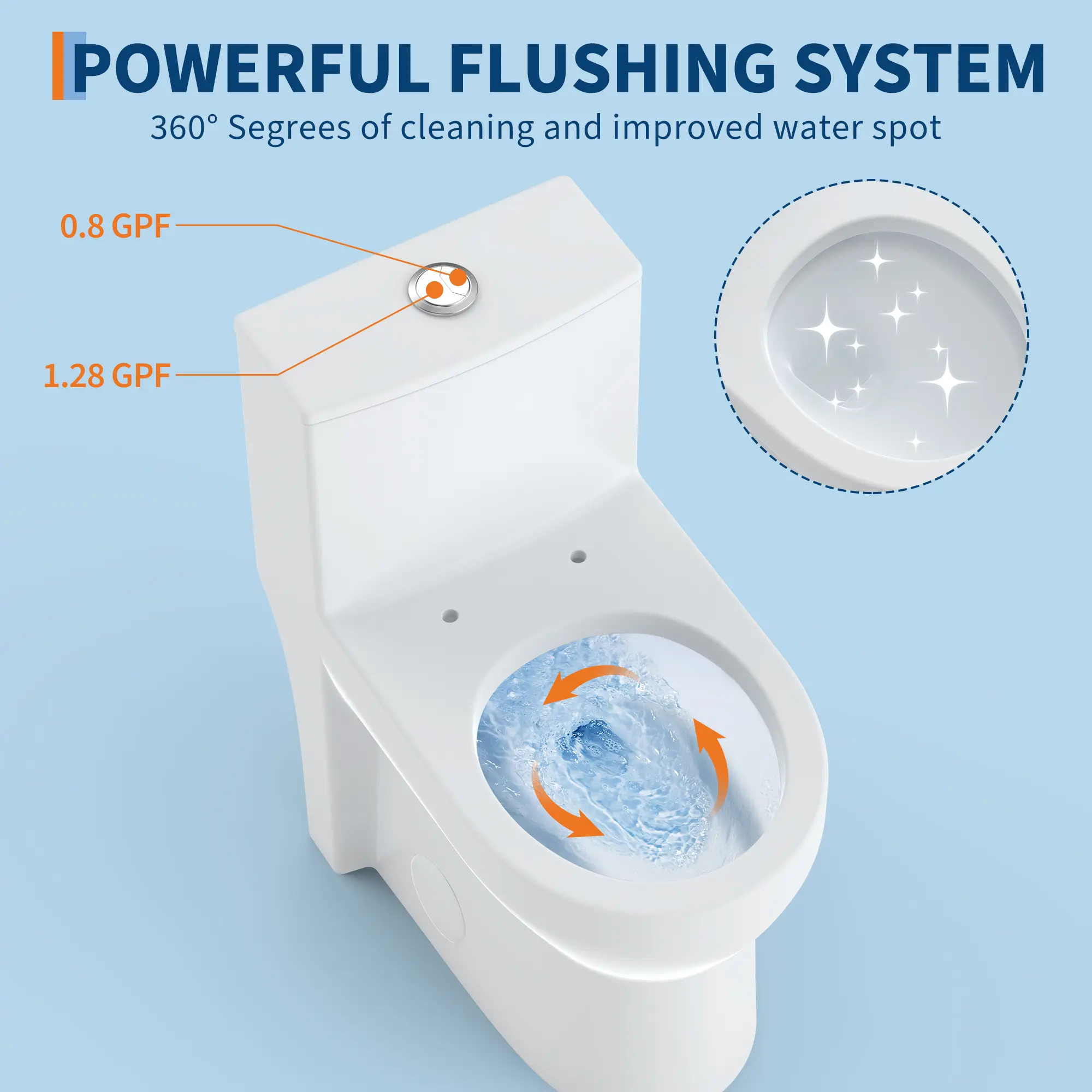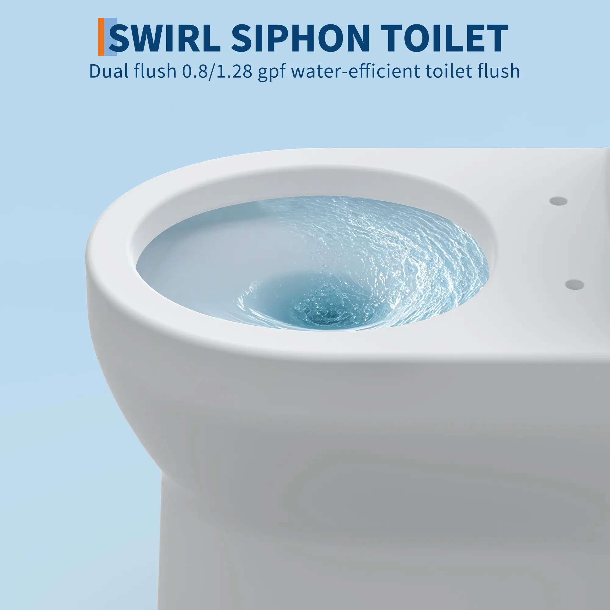 ·Powerful Flushing Performance & Durable Ceramic Engineered with a robust siphon-jet flushing mechanism that ensures a thorough and reliable clean with every use. It is crafted from high-gloss, stain-resistant vitreous china ceramic for long-lasting durability.