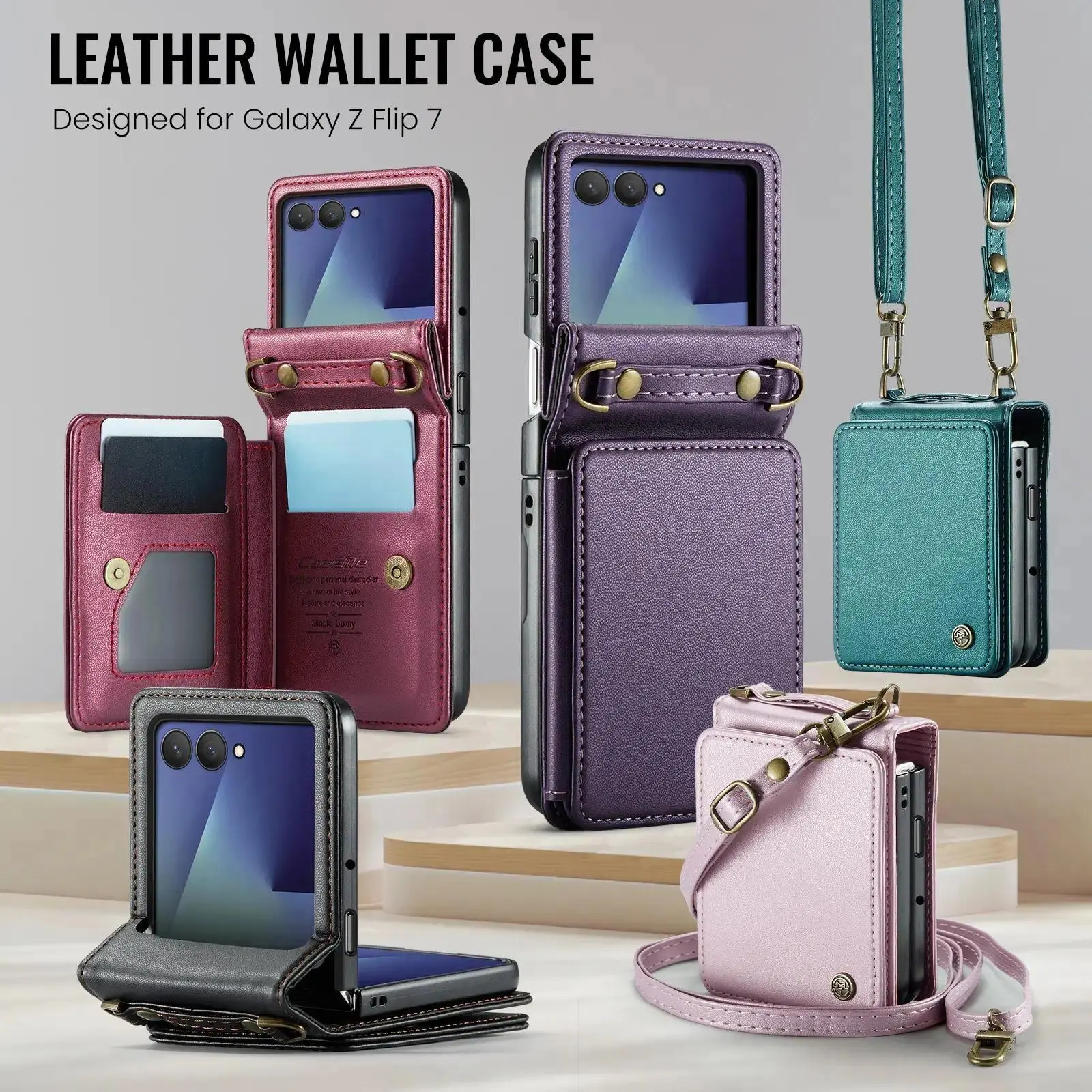 5. Protective Cover for Samsung Galaxy Z Flip 7 with RFID Card Holder, Sturdy Detachable Wrist Strap, Wallet-Inspired Design Perfect for Everyday Daily Use