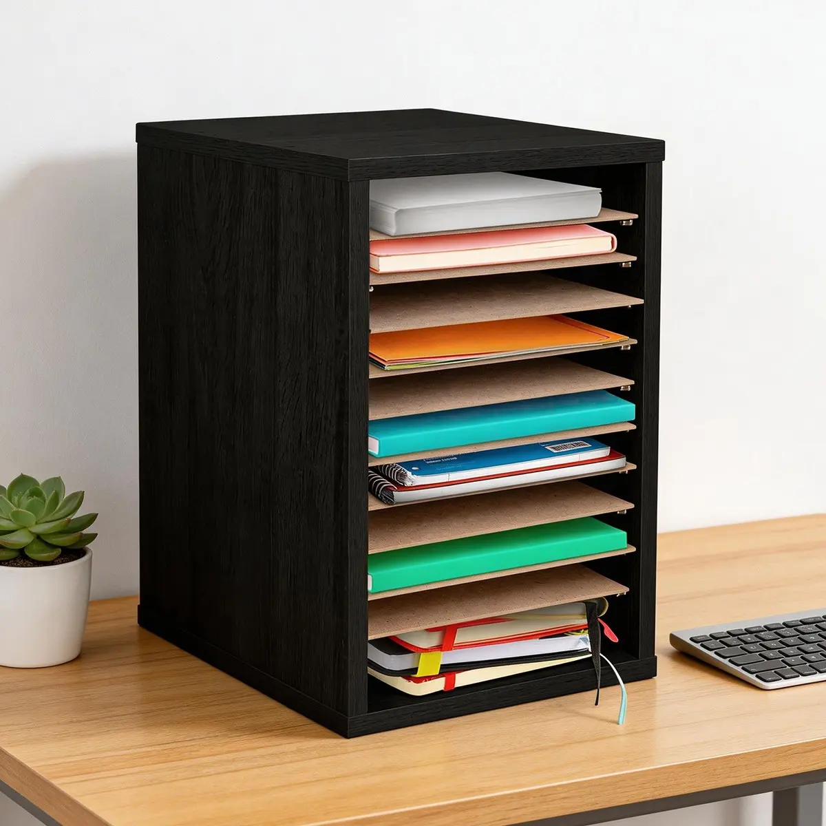 Vertical Desktop Organizer Rack with 11 Slots, Mail Sorting Stand, PVC Paper Classification Shelf, Adjustable Layers, Home Office Storage