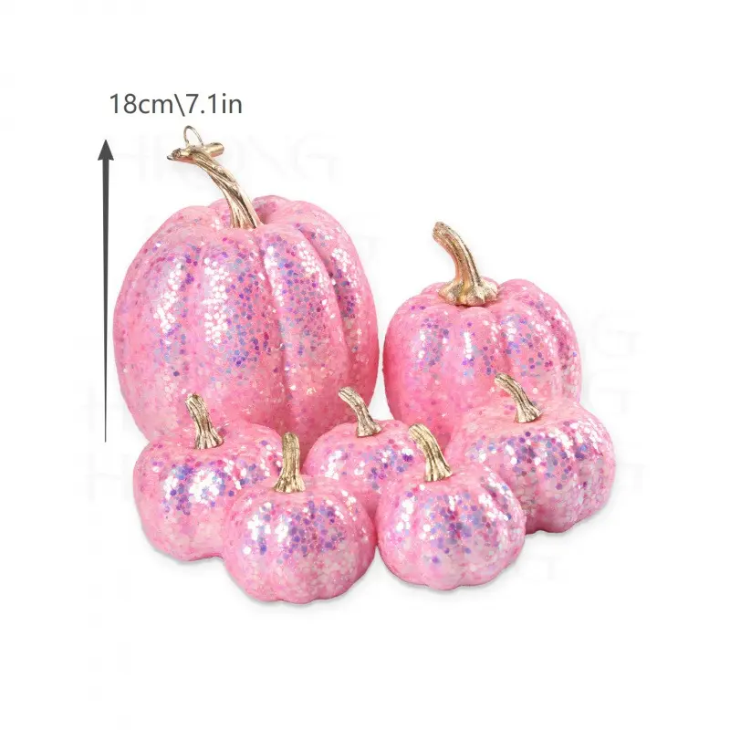 【Gold Accent】: This pumpkin is adorned with gold color glitter, adding an eye-catching sparkle to any festive arrangement.