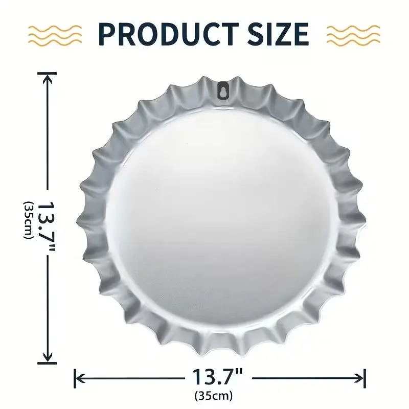 5. Vintage-Style Metal Sign Resembling 2D Flat Beer Bottle Cap, Decorative Wall Art for Home & Bar, Durable Design Measures 13.7 Inches