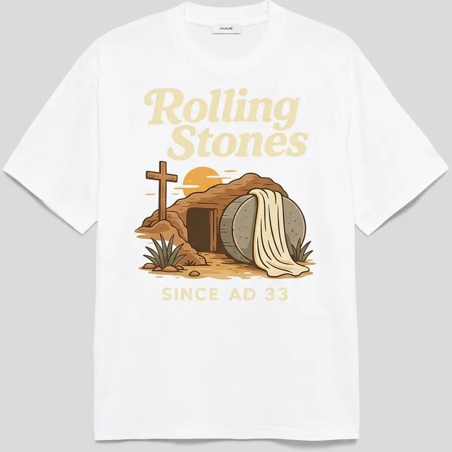 Rolling Stones Easter T-Shirt Christian Humor Tee He is Risen Since AD 33 Sarcastic Religious Graphic Shirt for Men and Women Casual Menswear