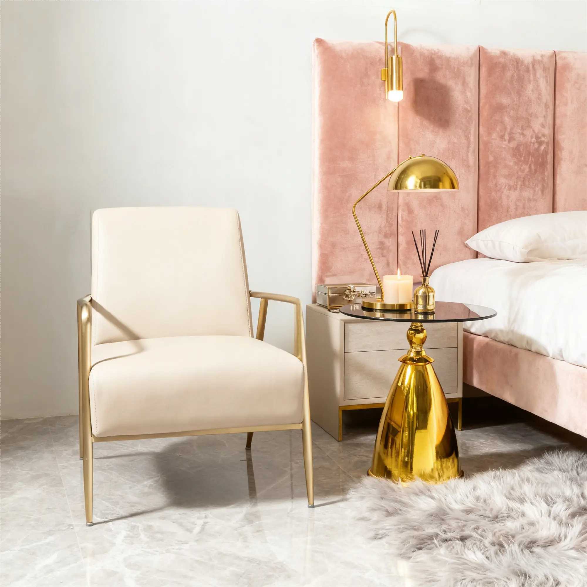 Featuring a gold metal base and shiny gold-plated finish, this small side table boasts a stylish look. It’s stable (21.65-inch height) and blends seamlessly with your existing decor.