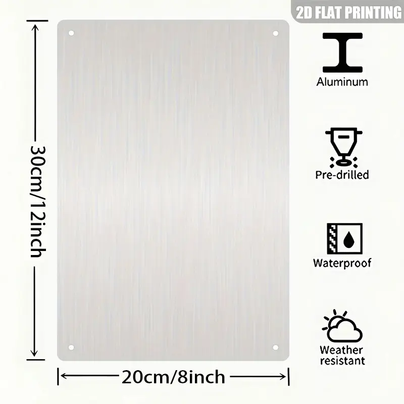 Aluminum Wall Art Print, 8x12 Inch Metal Sign, Home Decor for Restaurant Garage Gift, Universal Setting, 2D Flat Design