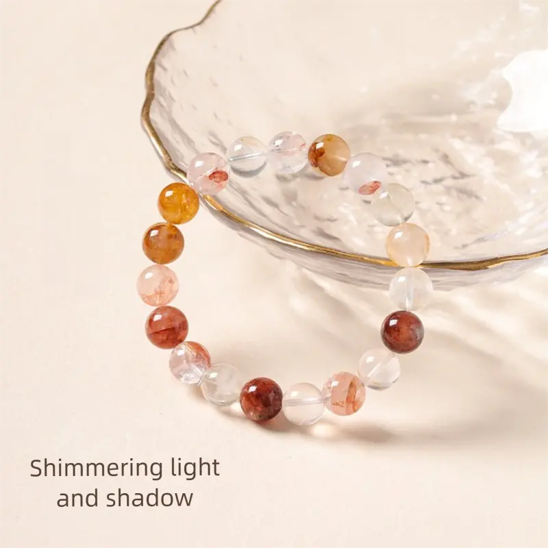 [Sweet Encounter] crystal bracelet, strawberry quartz white crystal, unisex, daily wear gift, natural stone gold accents, love romance symbol