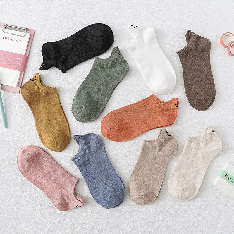 5/10 Pair Kawaii Embroidery Shallow Mouth Socks Women Spring Summer Short Cool Socks Casual Korean Style Street Sokken Female