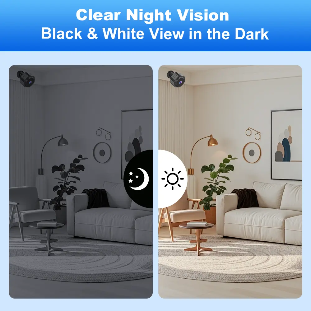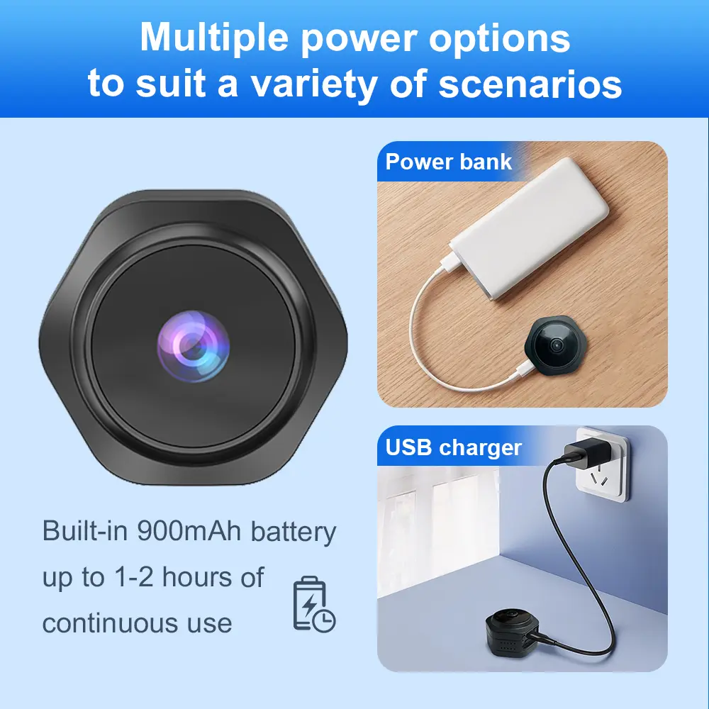 Flycloud F0 Mini WiFi Home Camera 1080P Full HD, Plug-in & Rechargeable, Night Vision, APP Alerts, Motion Detection for Home, Baby & Pet Monitor