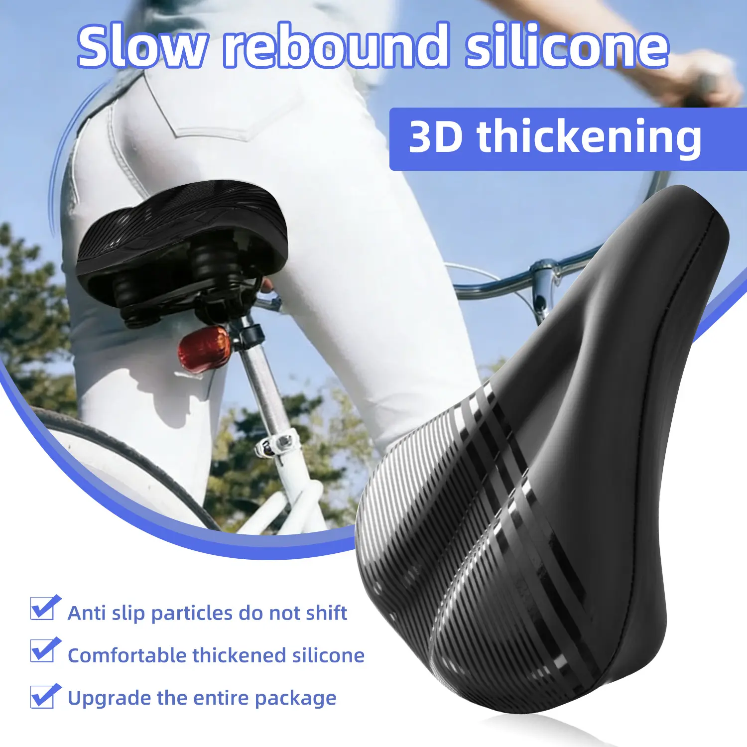 ·Comfort & Protection: This saddle cover is made from soft silicone, providing a comfortable ride. It features shock absorption to reduce vibrations, enhancing your cycling experience. Perfect for both men and women, it fits universally on most bicycles.