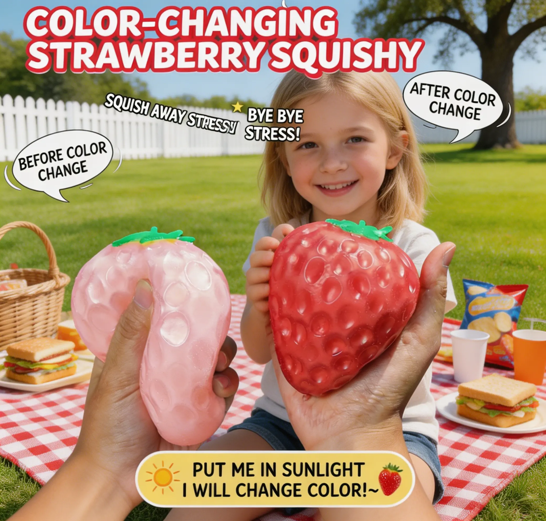 2PCS Color Changing Strawberry Squishy Stress Relief Fidget Toy Fruity Fidget Toy for Stress Relief & Sensory Play for Kids & Adults | Super Satisfying Squeeze
