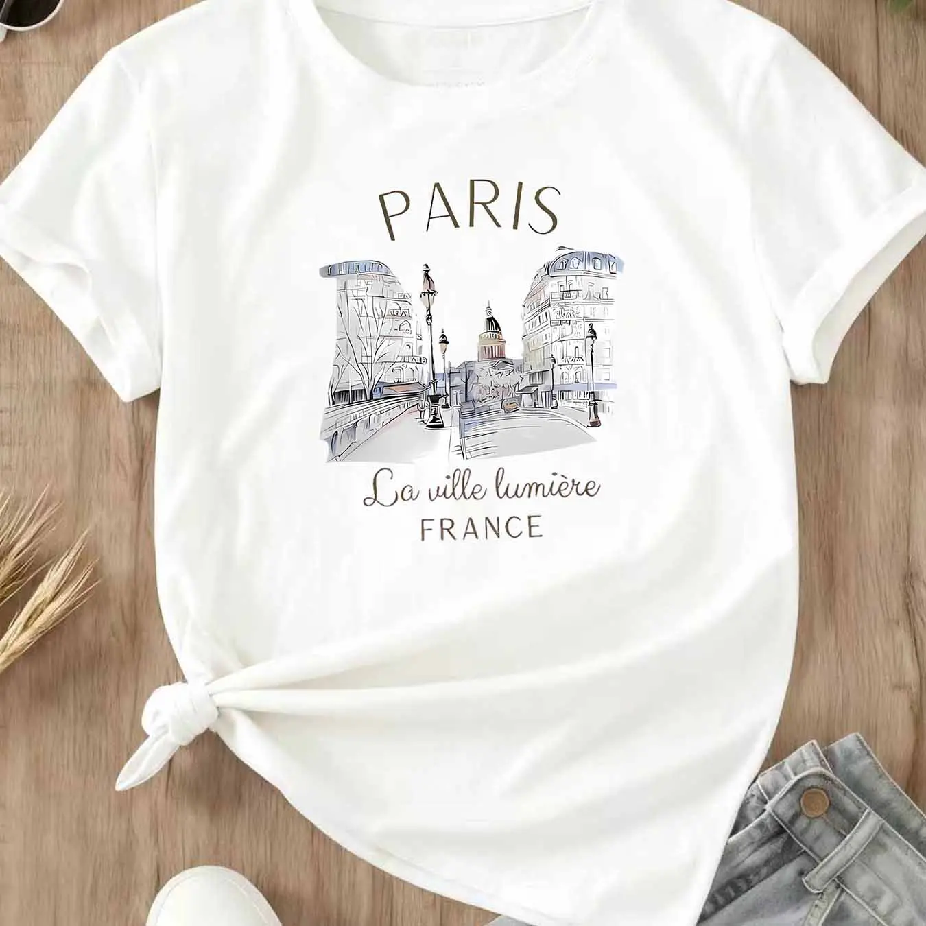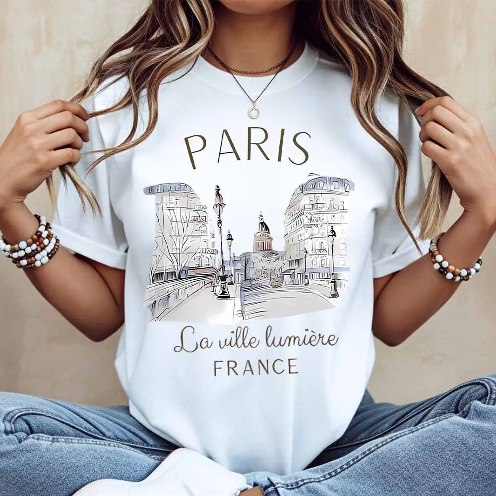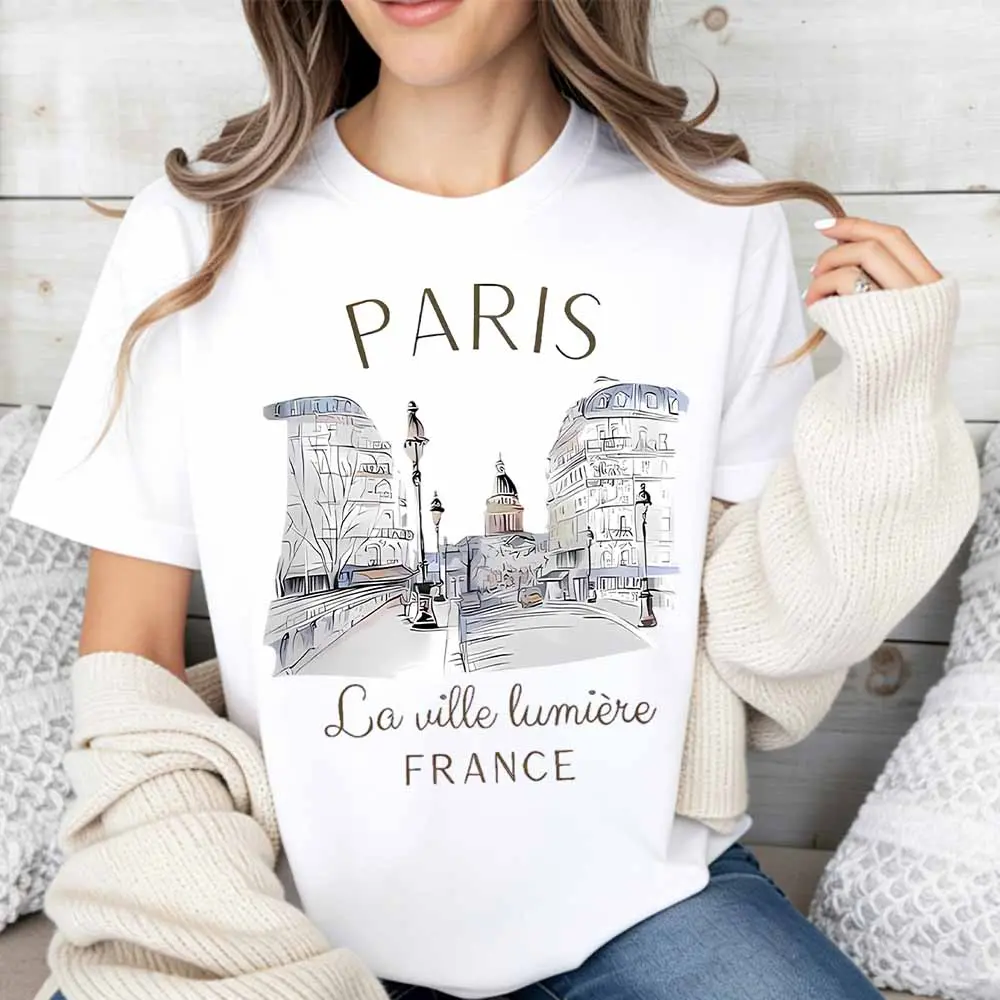 Paris Cityscape Print T Shirt Casual Loose Fit For Everyday Wear And Leisure Activities