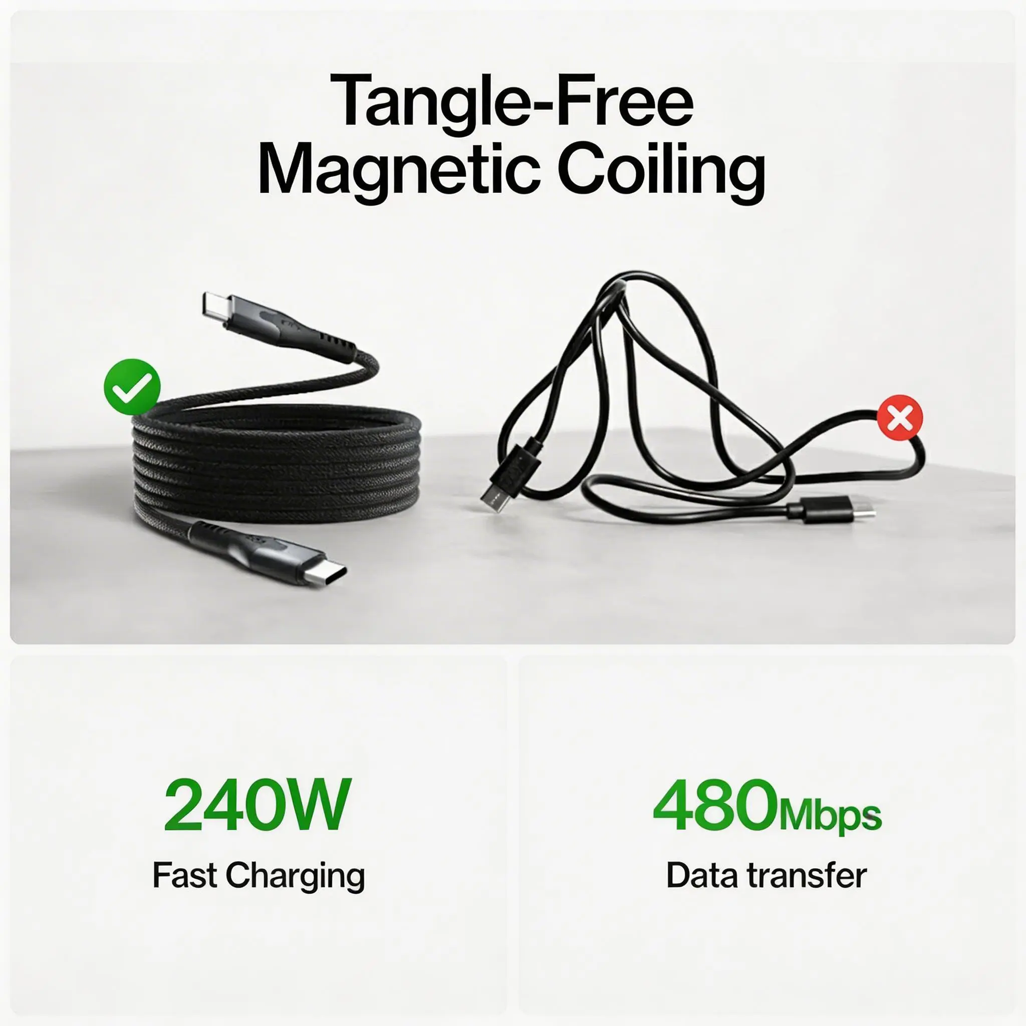 Czlife Pro USB-C to USB-C Cable is a magnetic Type-C fast charging cable. It's compatible with iPhone 17 Pro Max, MacBook Pro 15, and Galaxy S21/S20 Ultra. This cable offers 240W power, ensuring efficient charging. The length is 4 feet/1.2 meters, providing ample reach. Perfect for both home and car use.