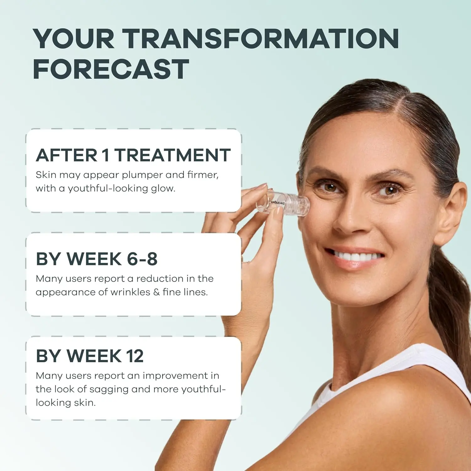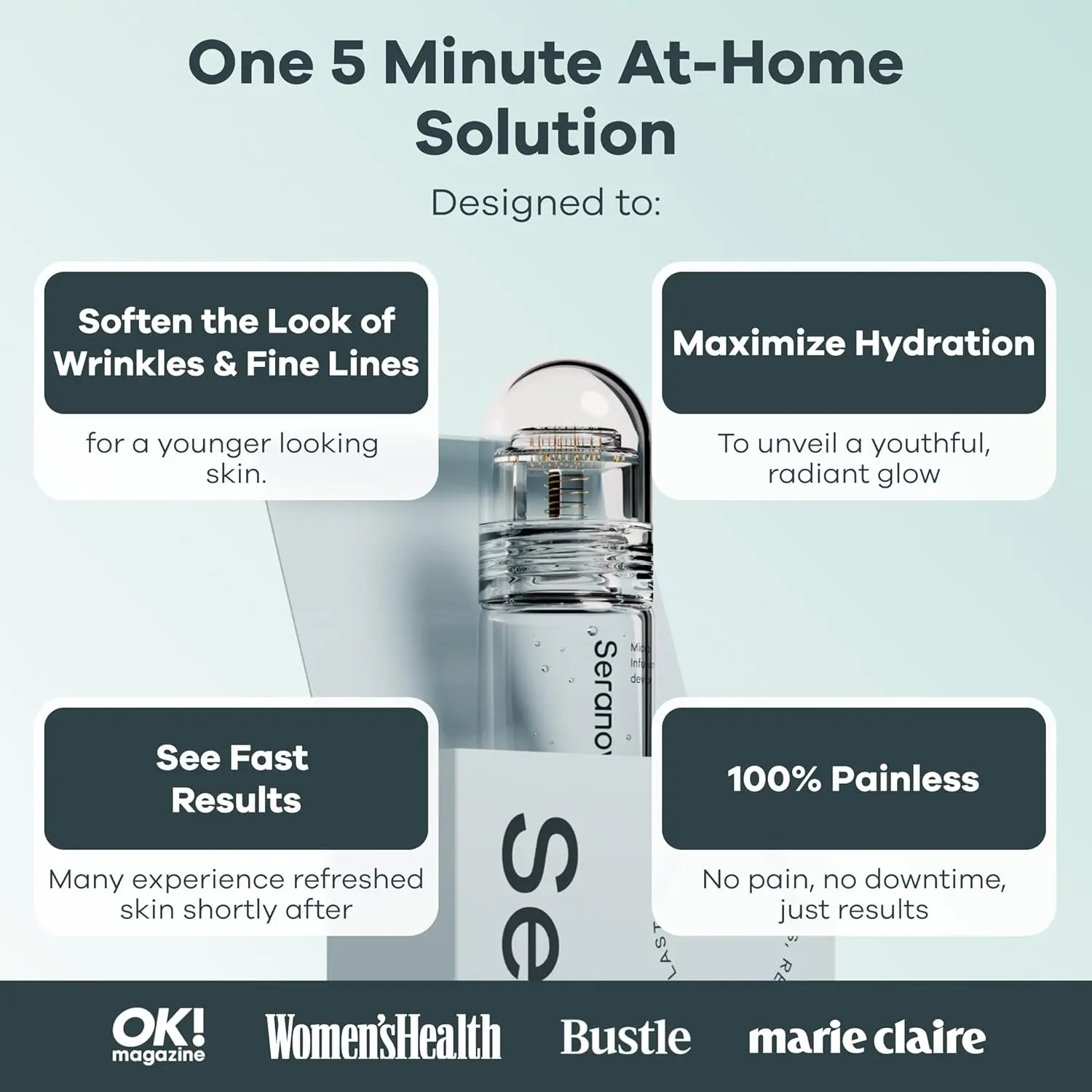 ·5 Minute At-Home Facial Kit: Fill in the hydrating serum, gently press the 0.05mm stamp onto your face and neck to support absorption. Repeat every 2 weeks for best skincare results.